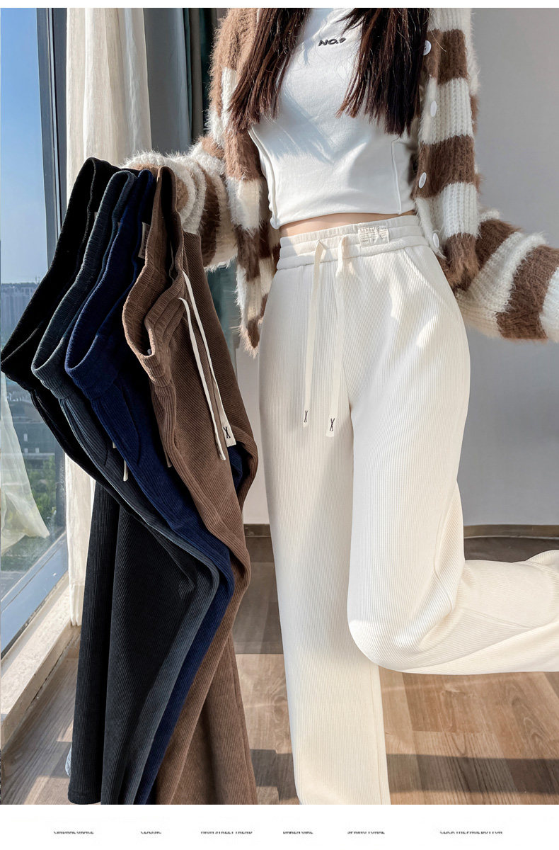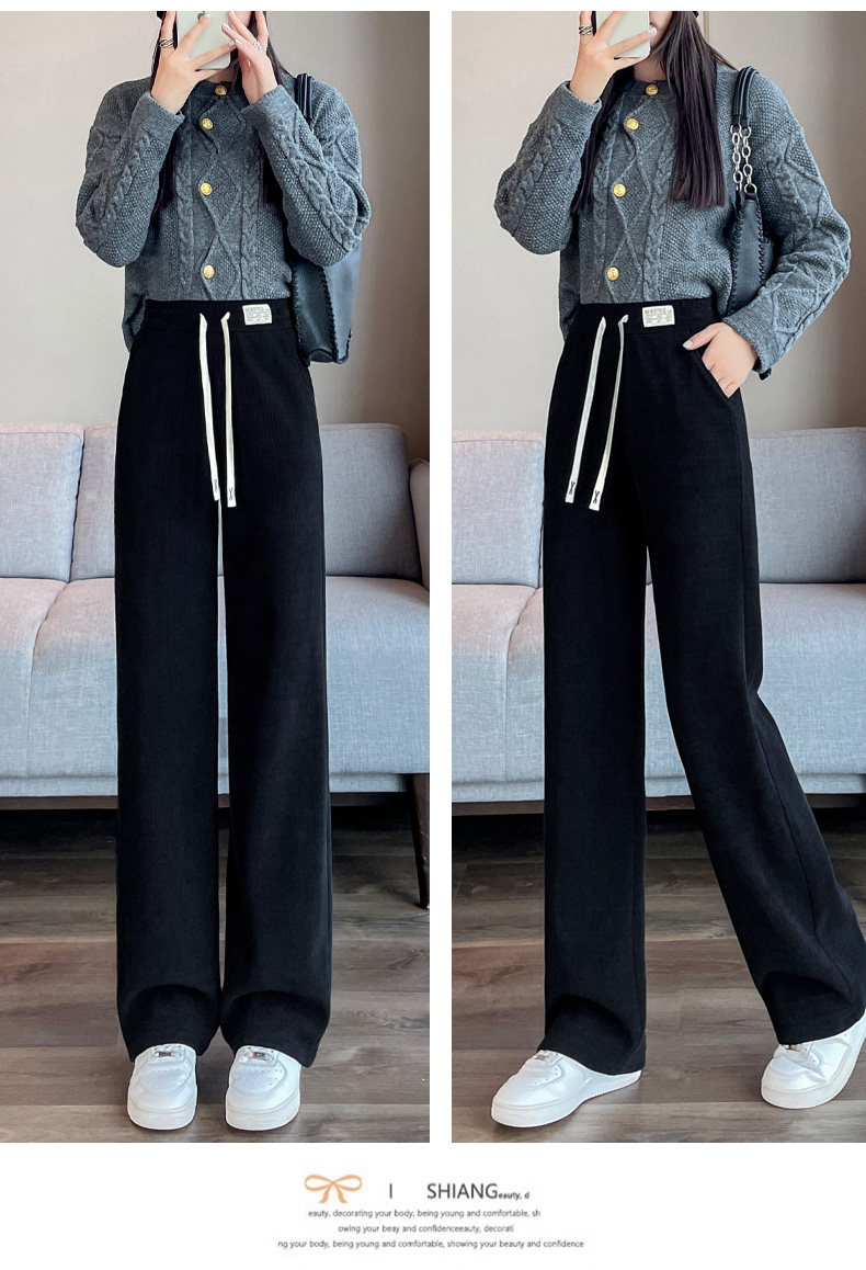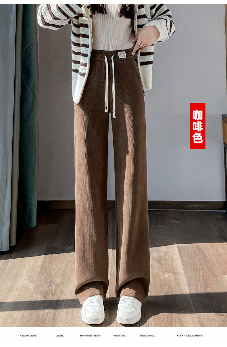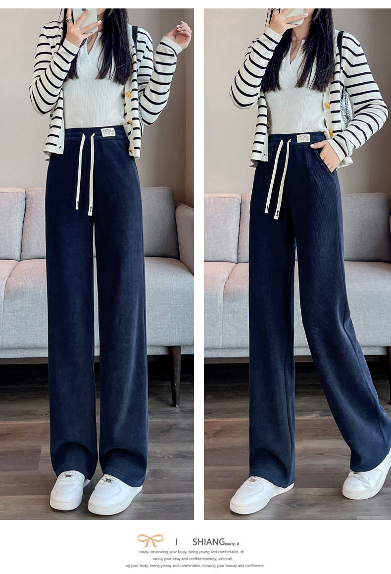 窄版濶腿褲女春秋2025雪尼爾小個子垂感加厚休閒直筒冬季加絨褲女