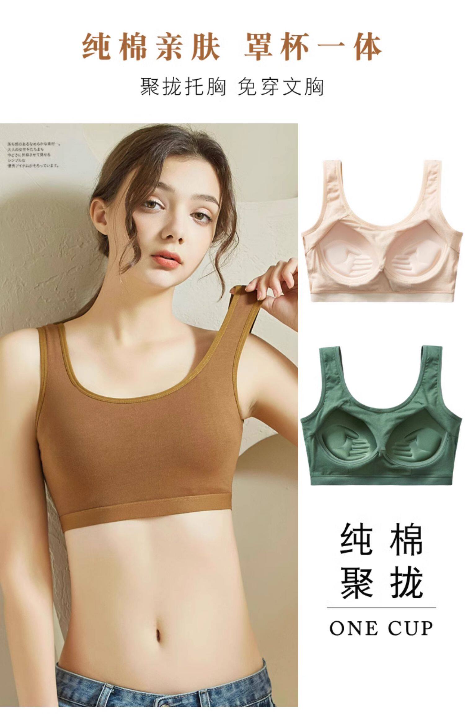 少女內衣學生高中防下垂定型文胸防震防走光運動聚攏美背抹胸純棉