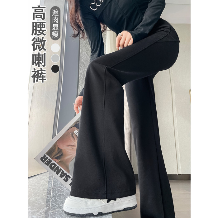 2026新款黑色微喇叭褲女春秋小個子秋冬加絨寬鬆休閒衛褲運動褲子