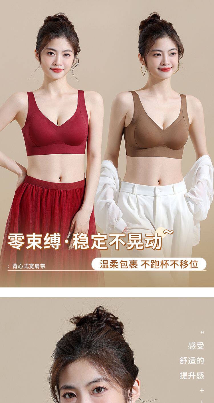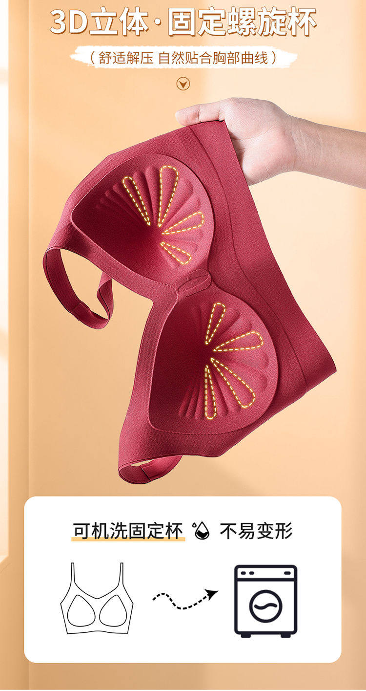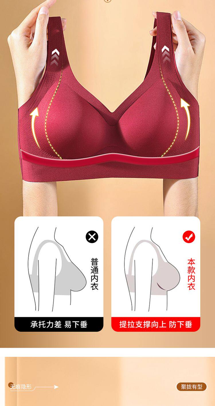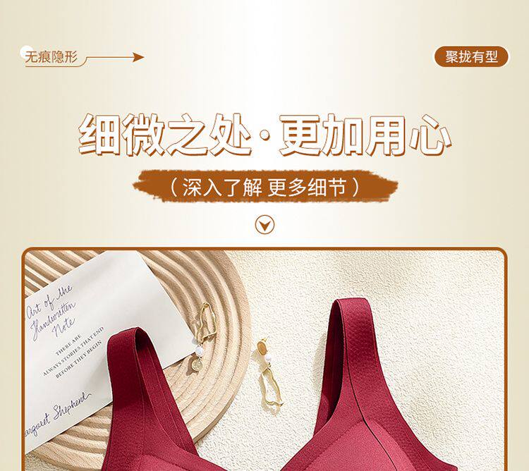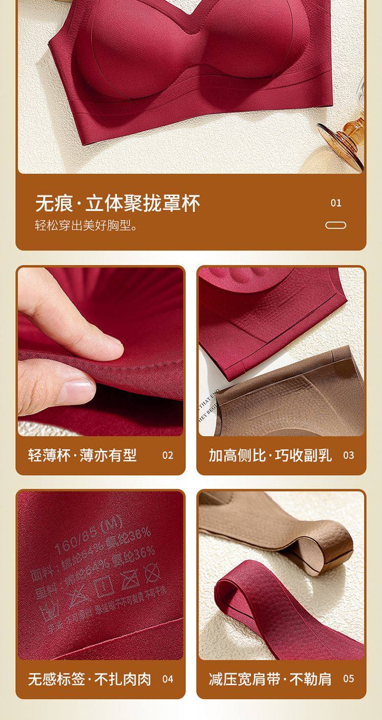 調整型無痕固定杯內衣女聚攏提拉美背養膚背心式文胸本命年紅色