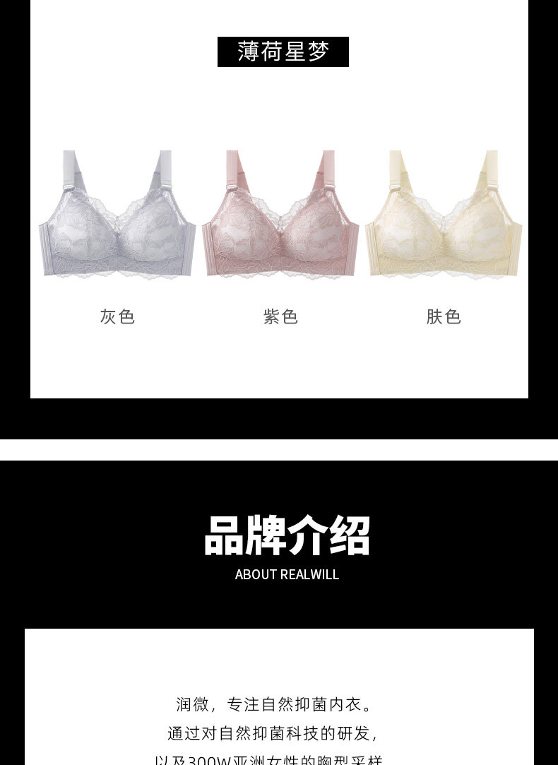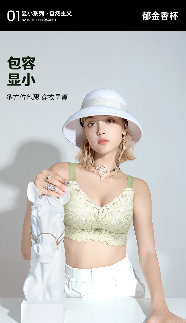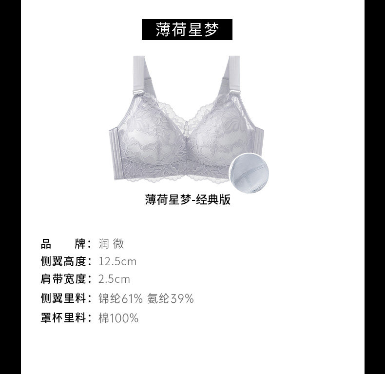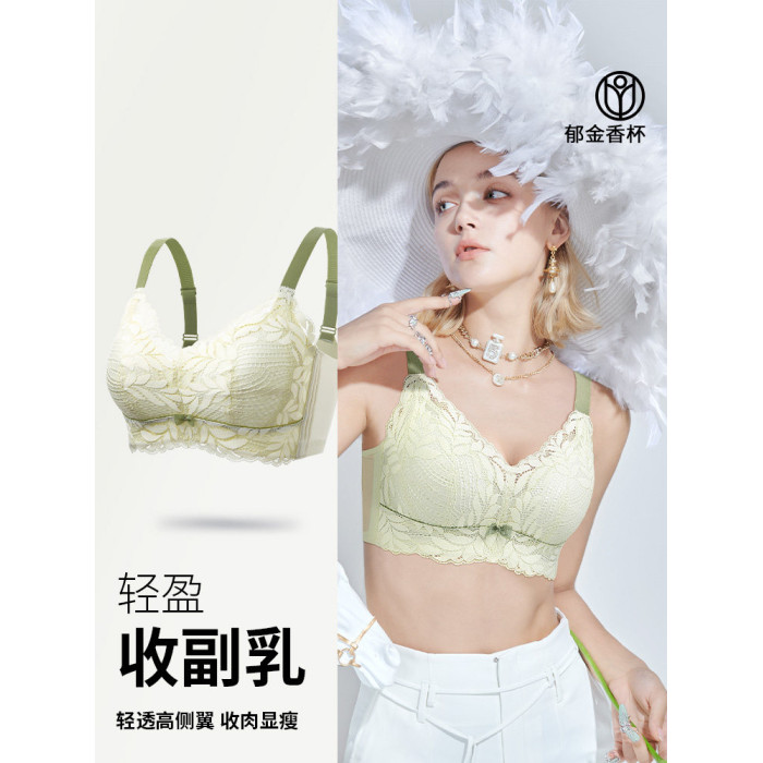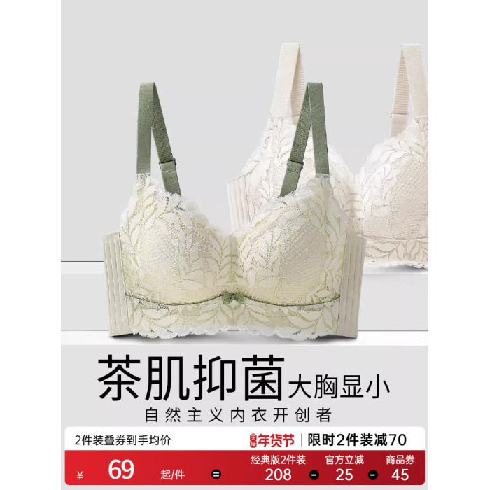 潤微茶肌內衣女士大胸顯小薄款收副乳聚攏大碼上托防下垂蕾絲文胸