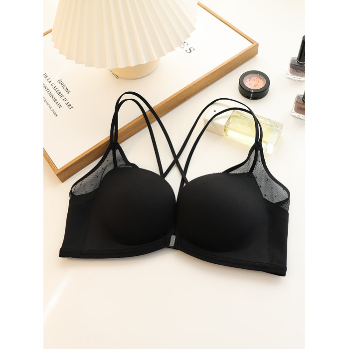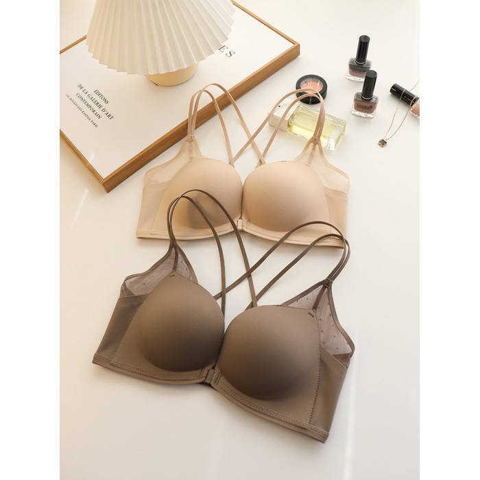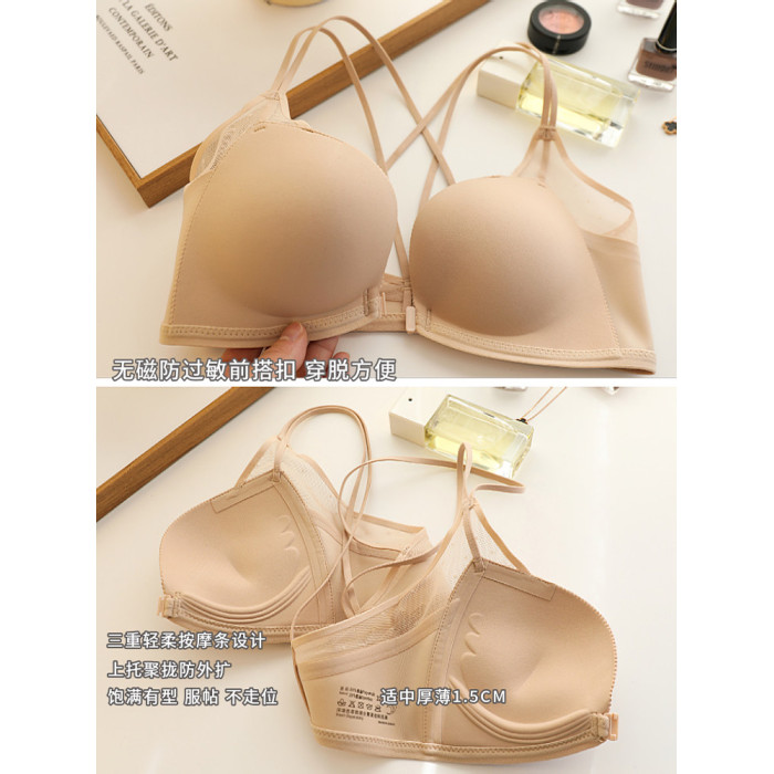 美背內衣女聚攏小胸顯大無痕2024新款前釦交叉無鋼圈文胸罩收副乳
