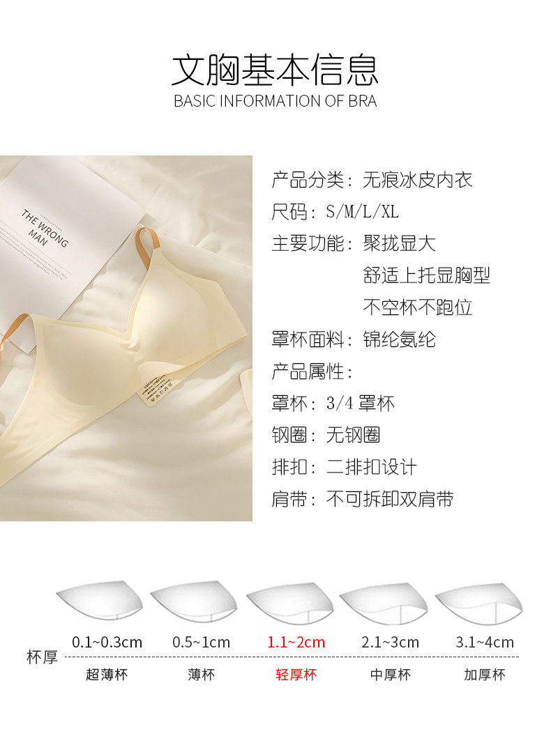 伊澈3159無痕內衣女小胸聚攏無鋼圈收副乳軟支撐女士文胸厚