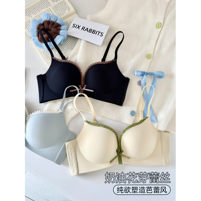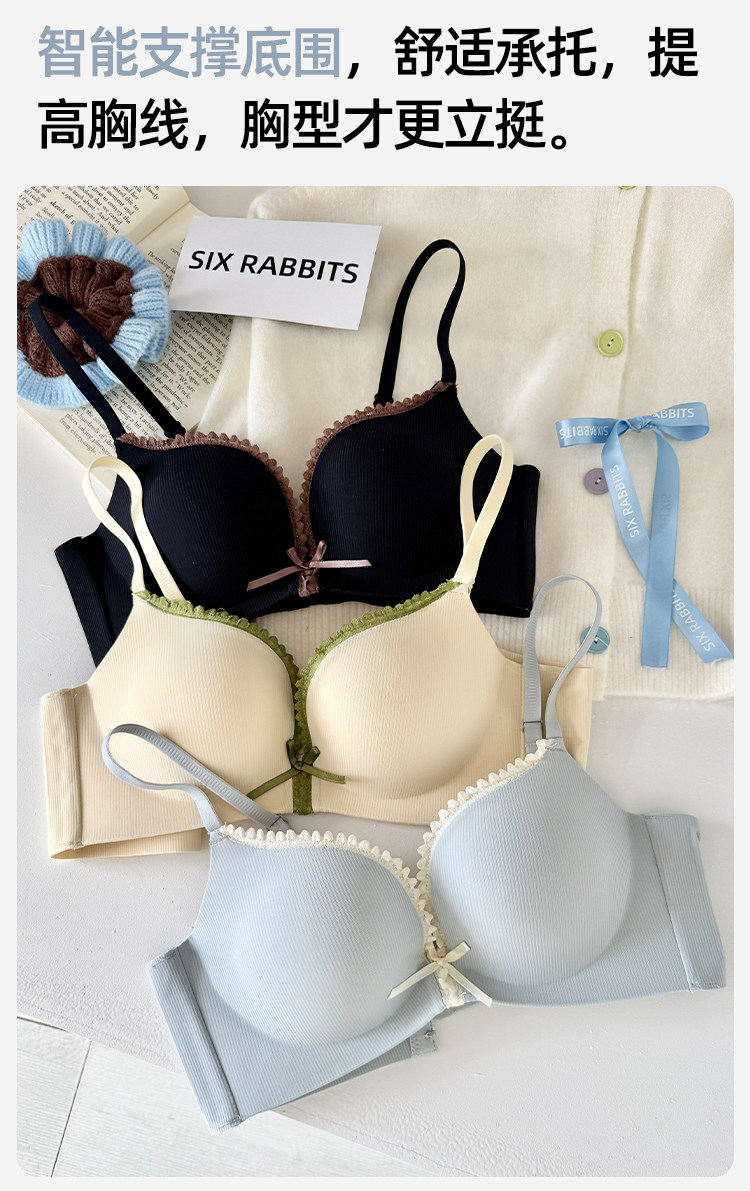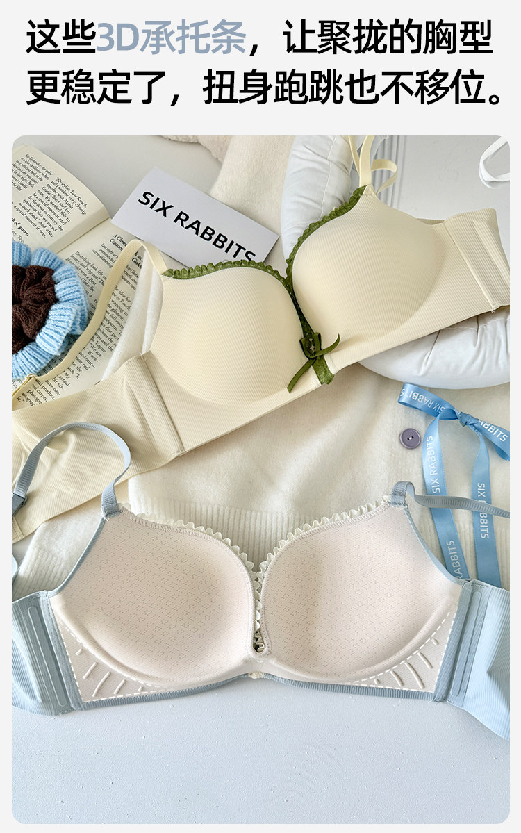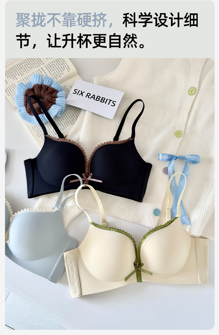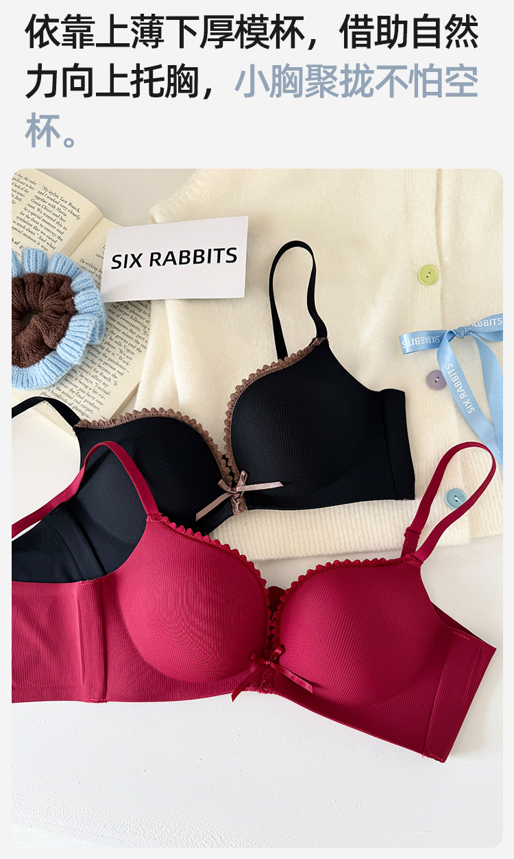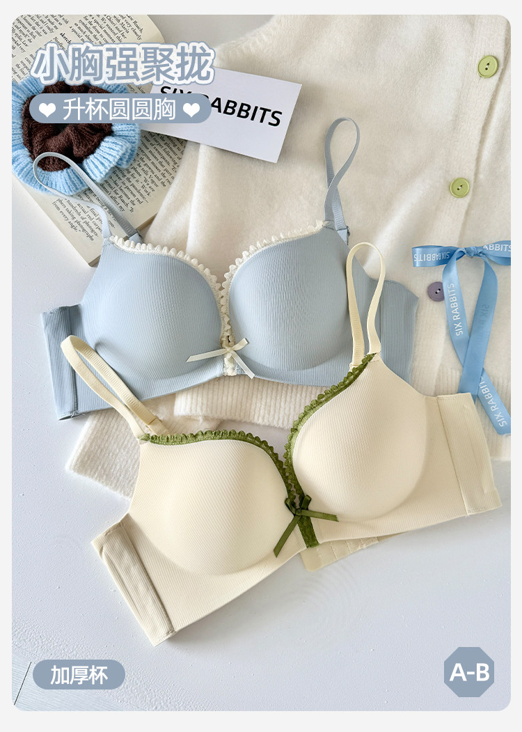 六隻兔子內衣女小胸聚攏顯大胸罩無鋼圈側收副乳防下垂蕾絲文胸