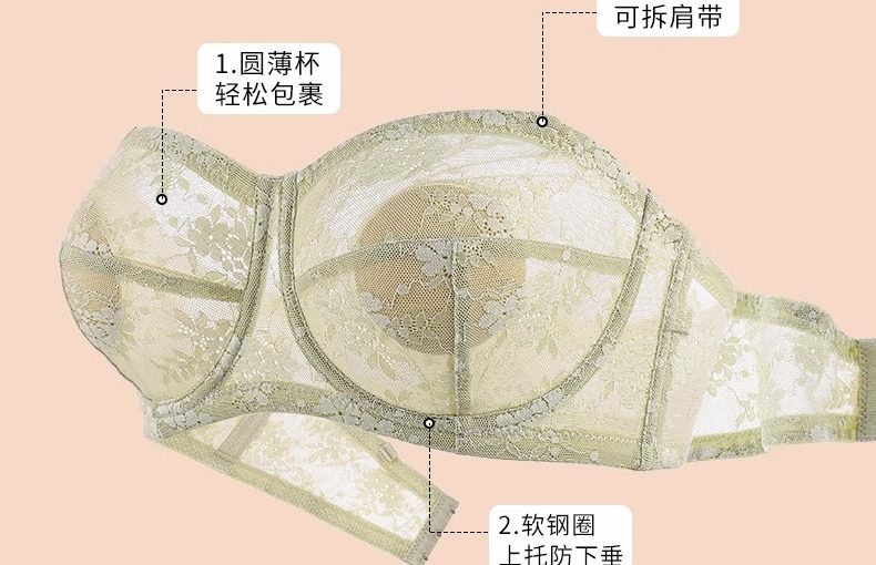超薄款無肩帶內衣女防滑聚攏隱形抹胸貼裹胸大胸顯小防下垂文胸夏