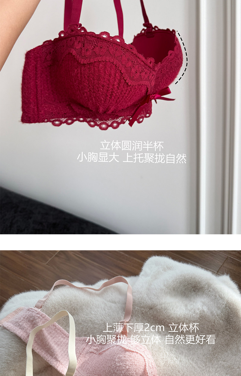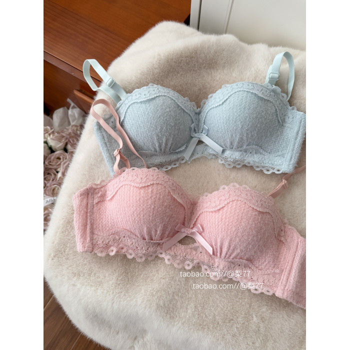 「絲絨蝴蝶結」小公主~ 半杯內衣女小胸聚攏顯大上托防下垂文胸罩