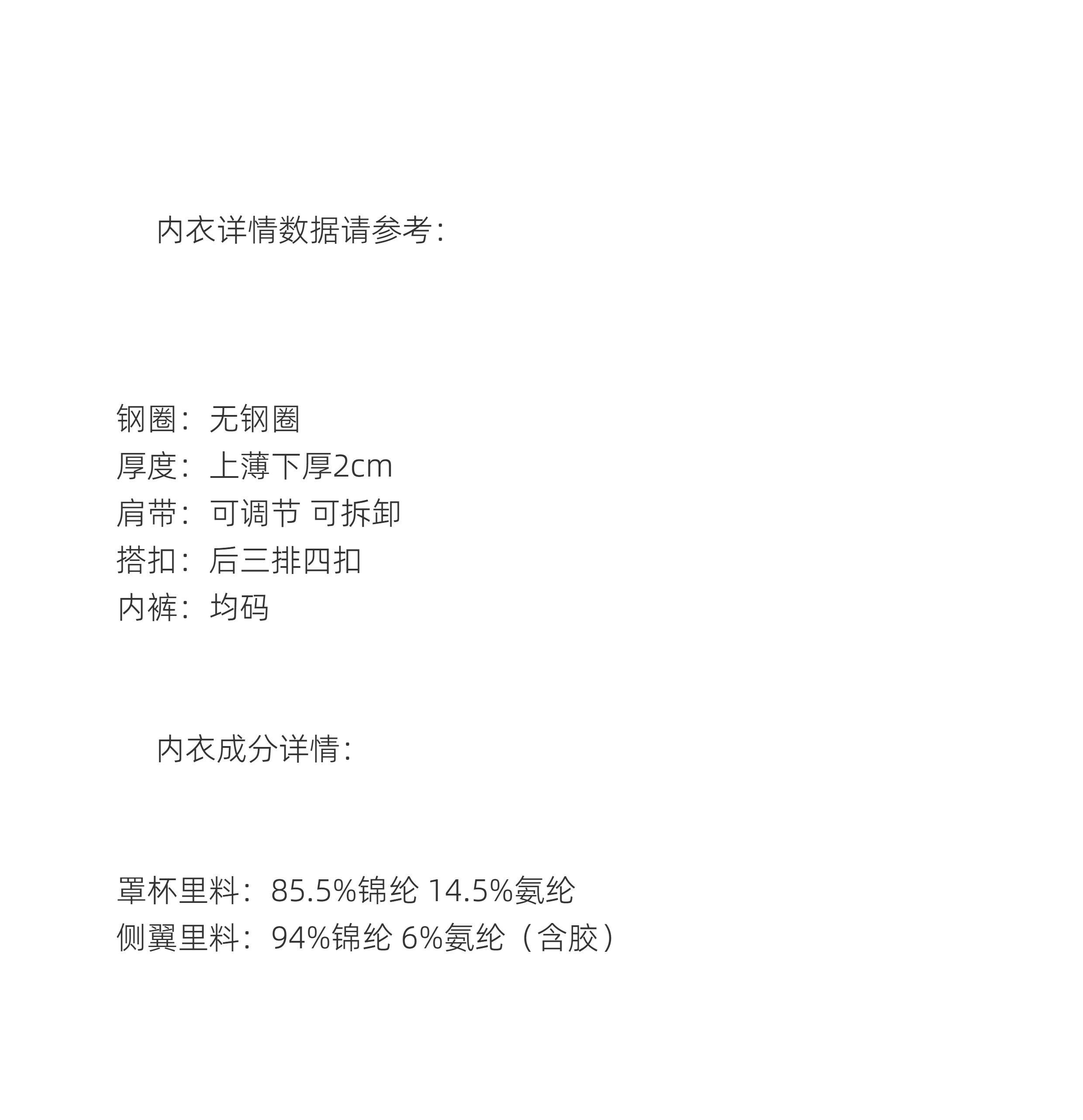 | 文胸款式 | 傳統式 |