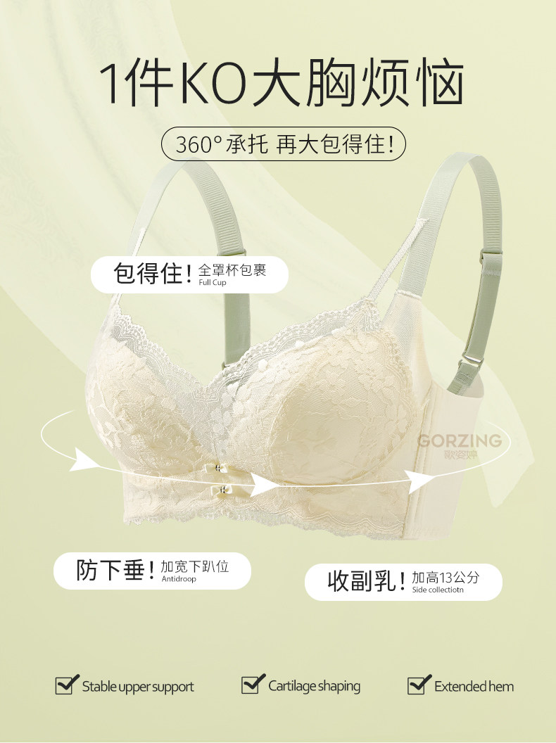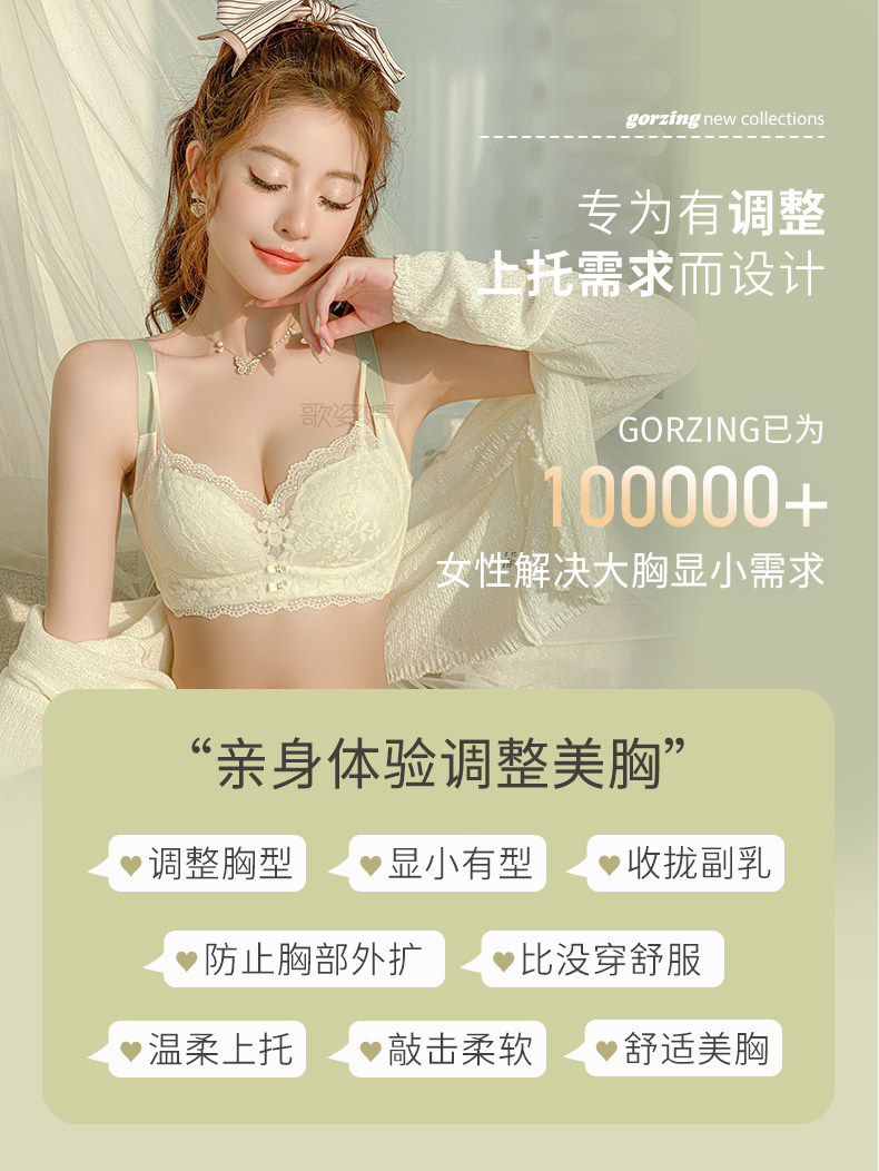 大胸顯小內衣女調整型收副乳防下垂聚攏無鋼圈薄款夏季大碼文胸罩