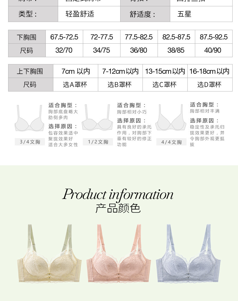 | 罩杯款式 | 3/4罩杯 |