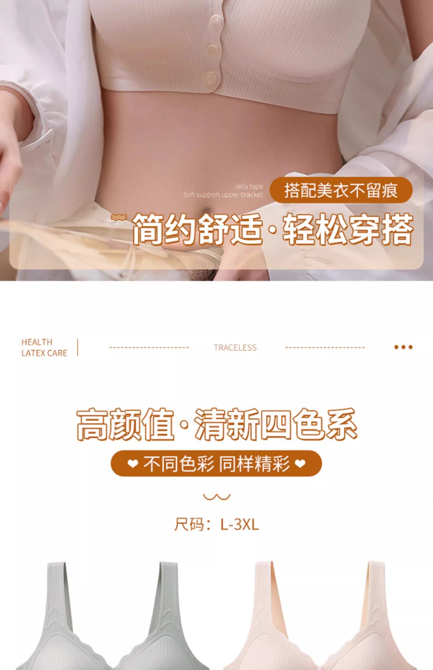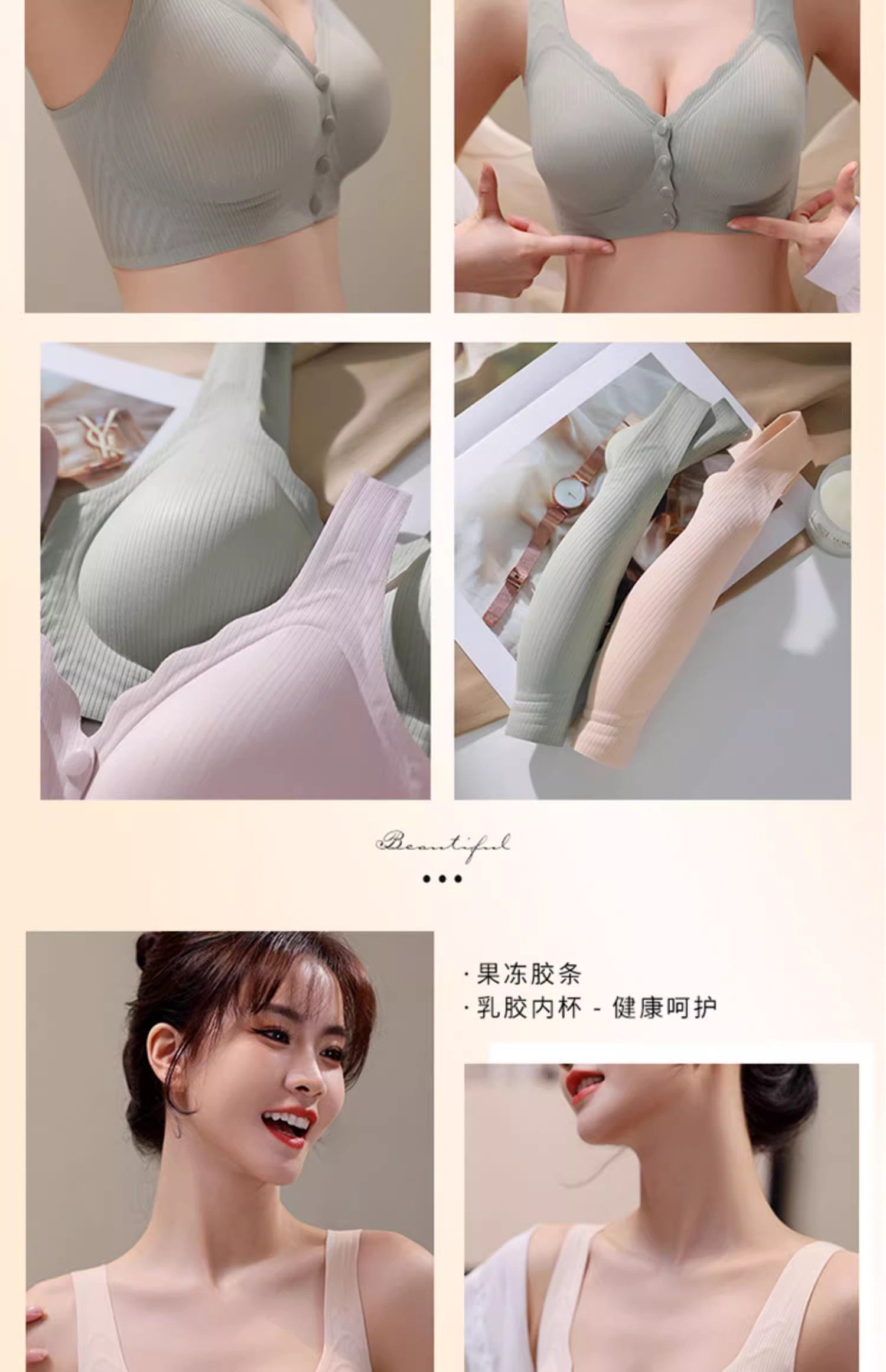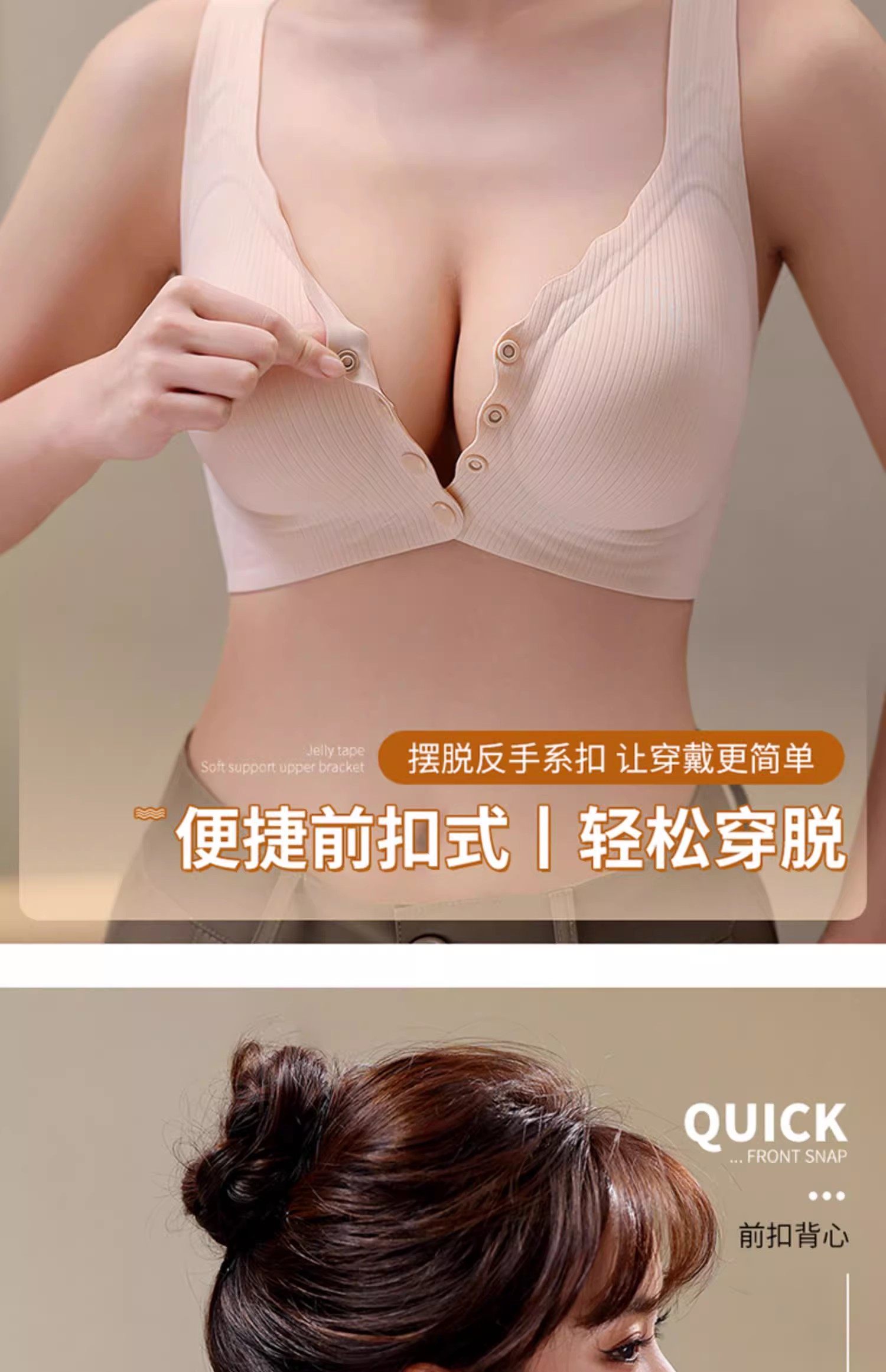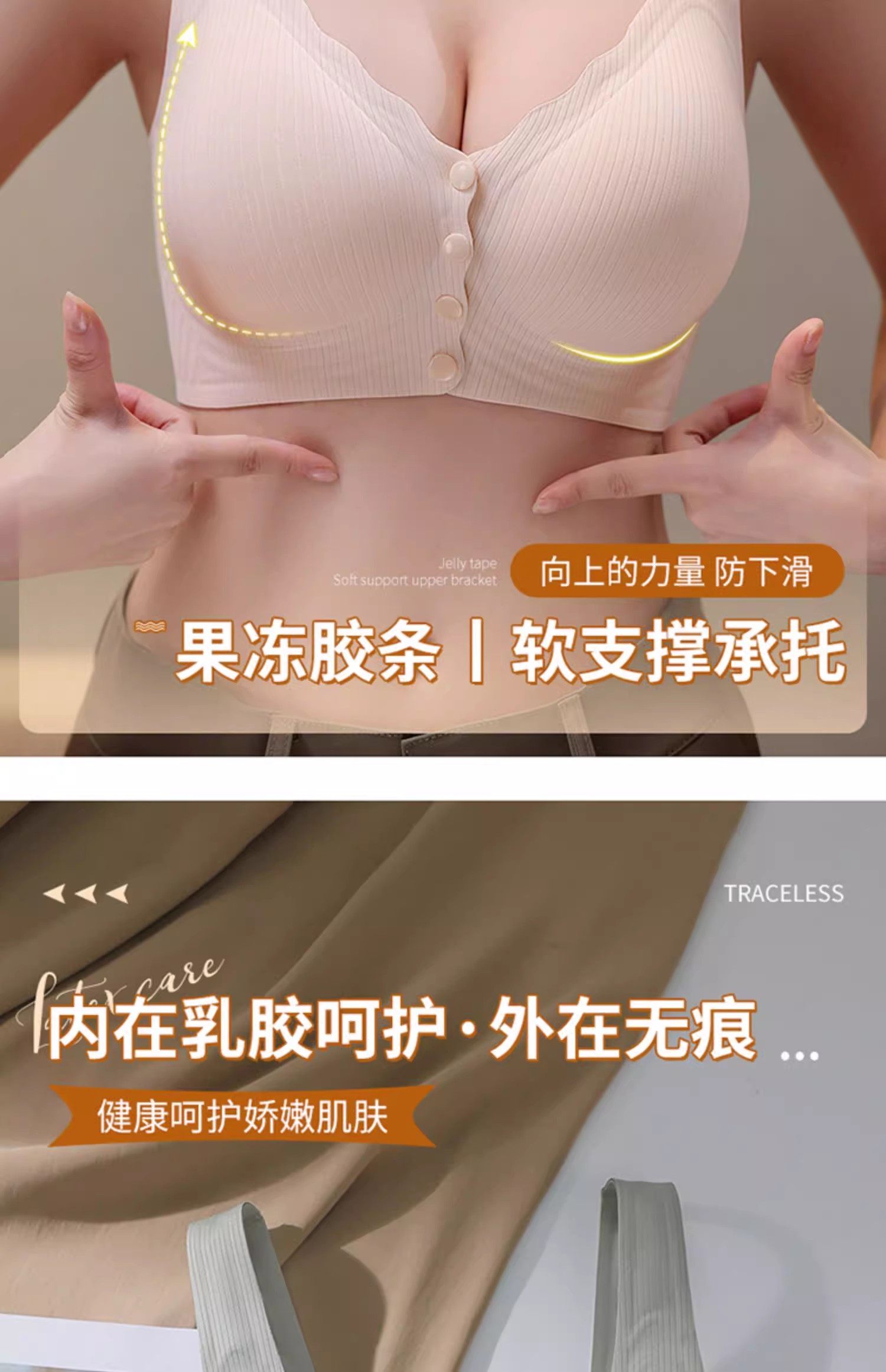 前釦無痕內衣媽媽防下垂聚攏乳膠文胸女無鋼圈大碼胸罩哺乳背心式