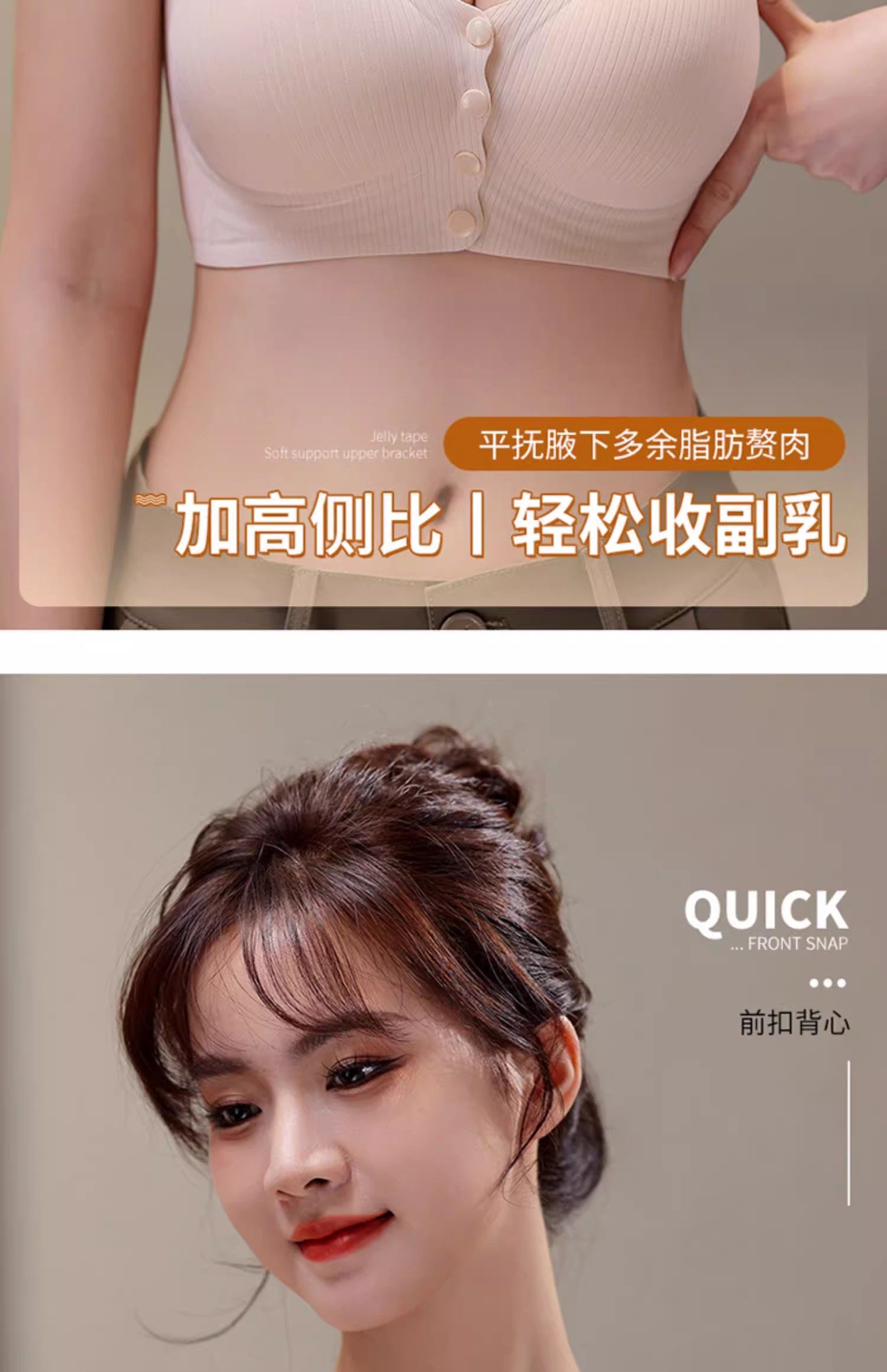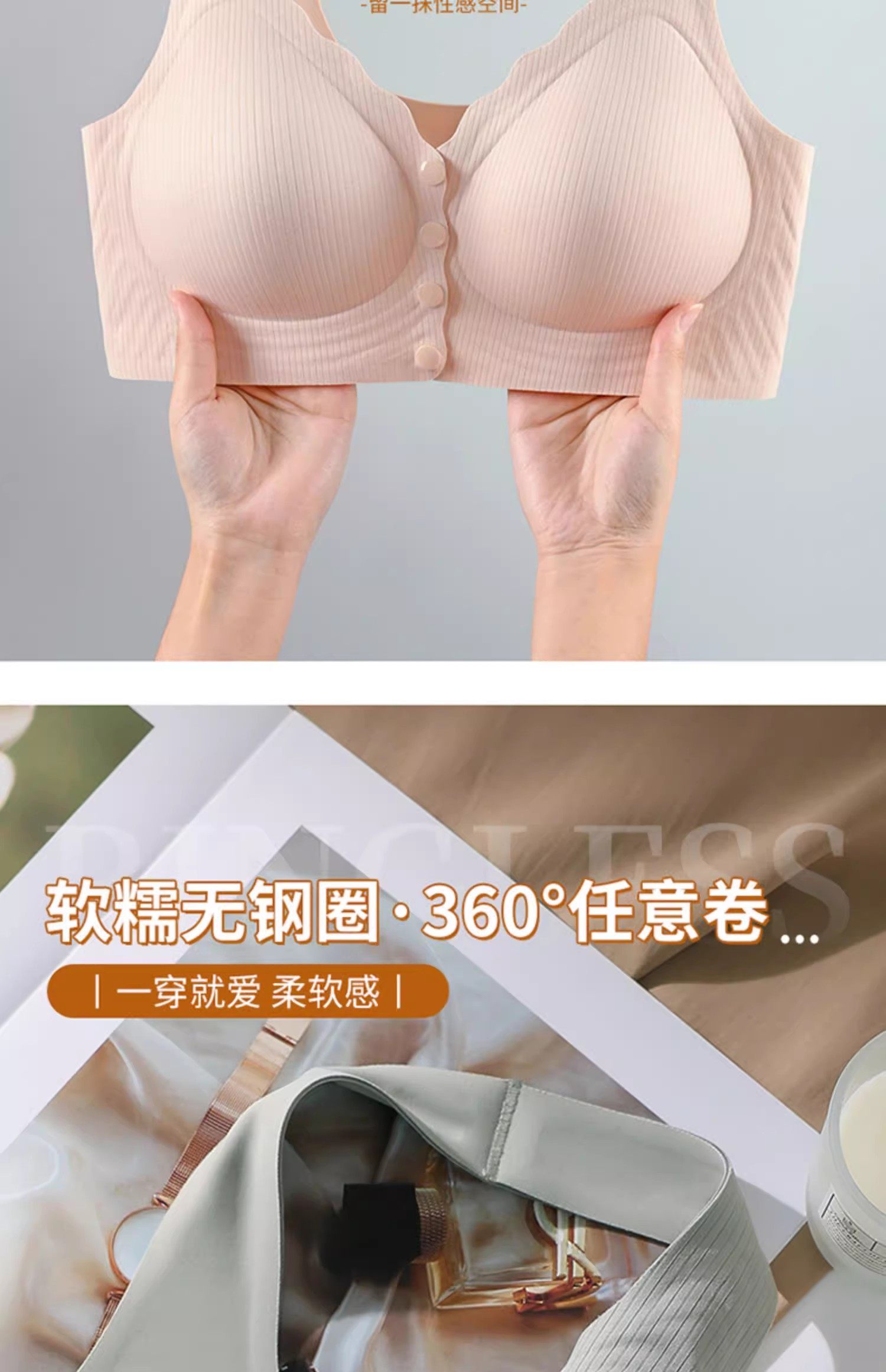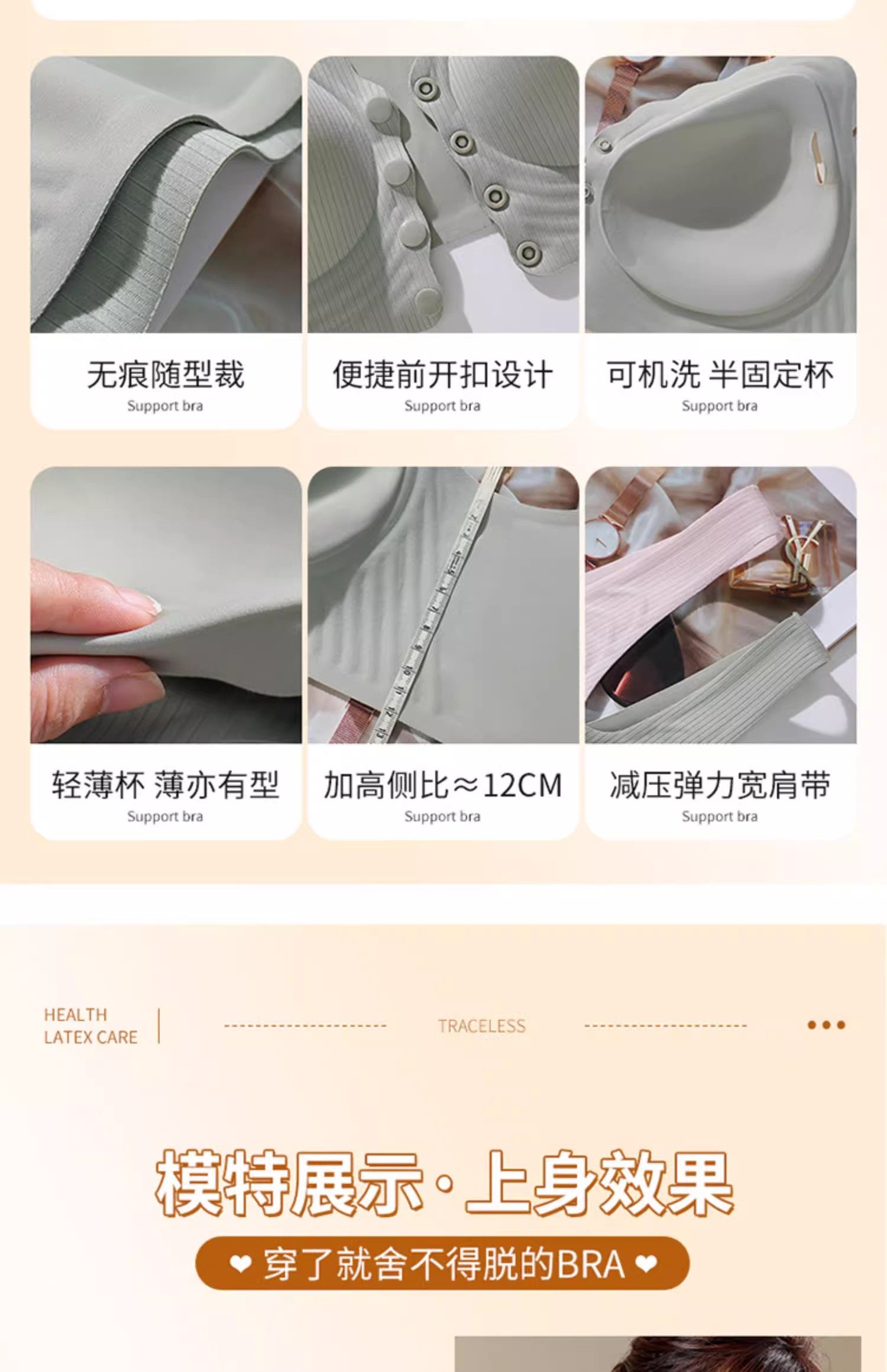 前釦無痕內衣媽媽防下垂聚攏乳膠文胸女無鋼圈大碼胸罩哺乳背心式