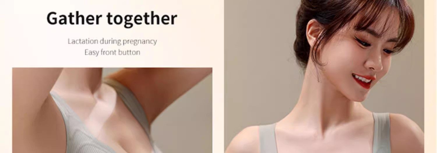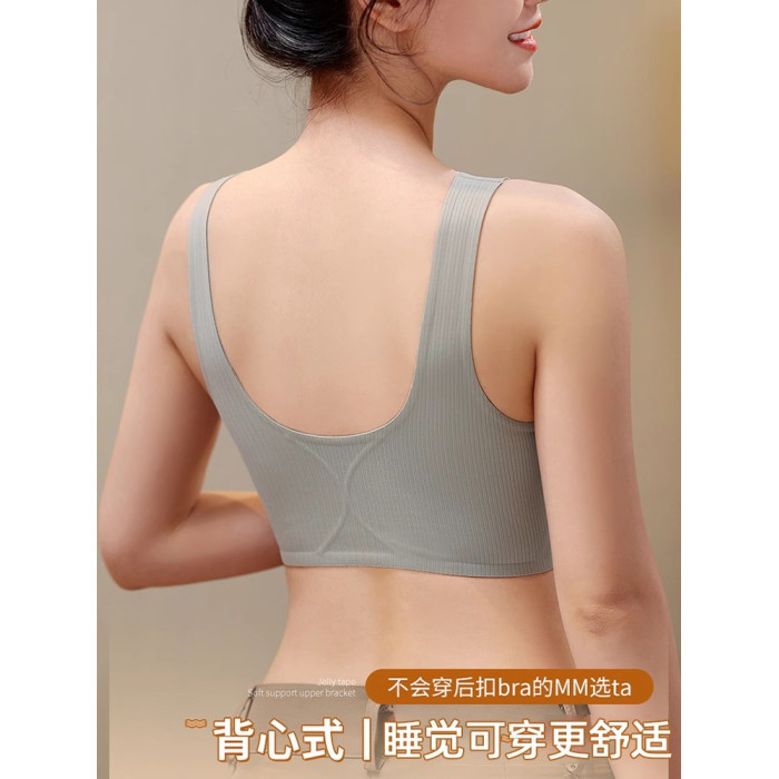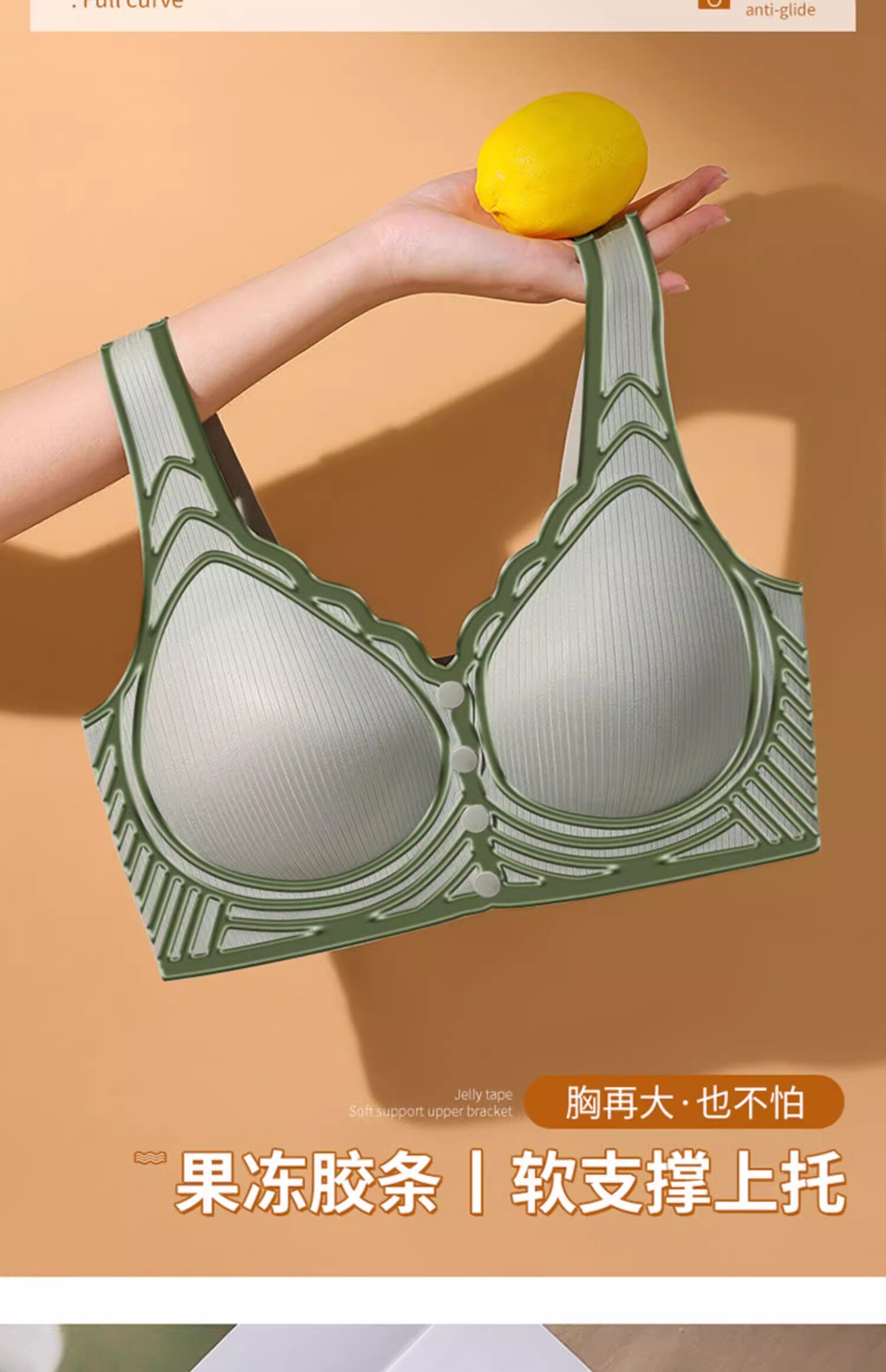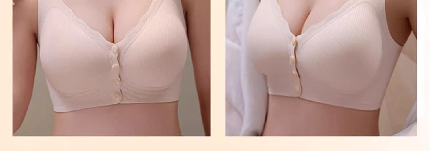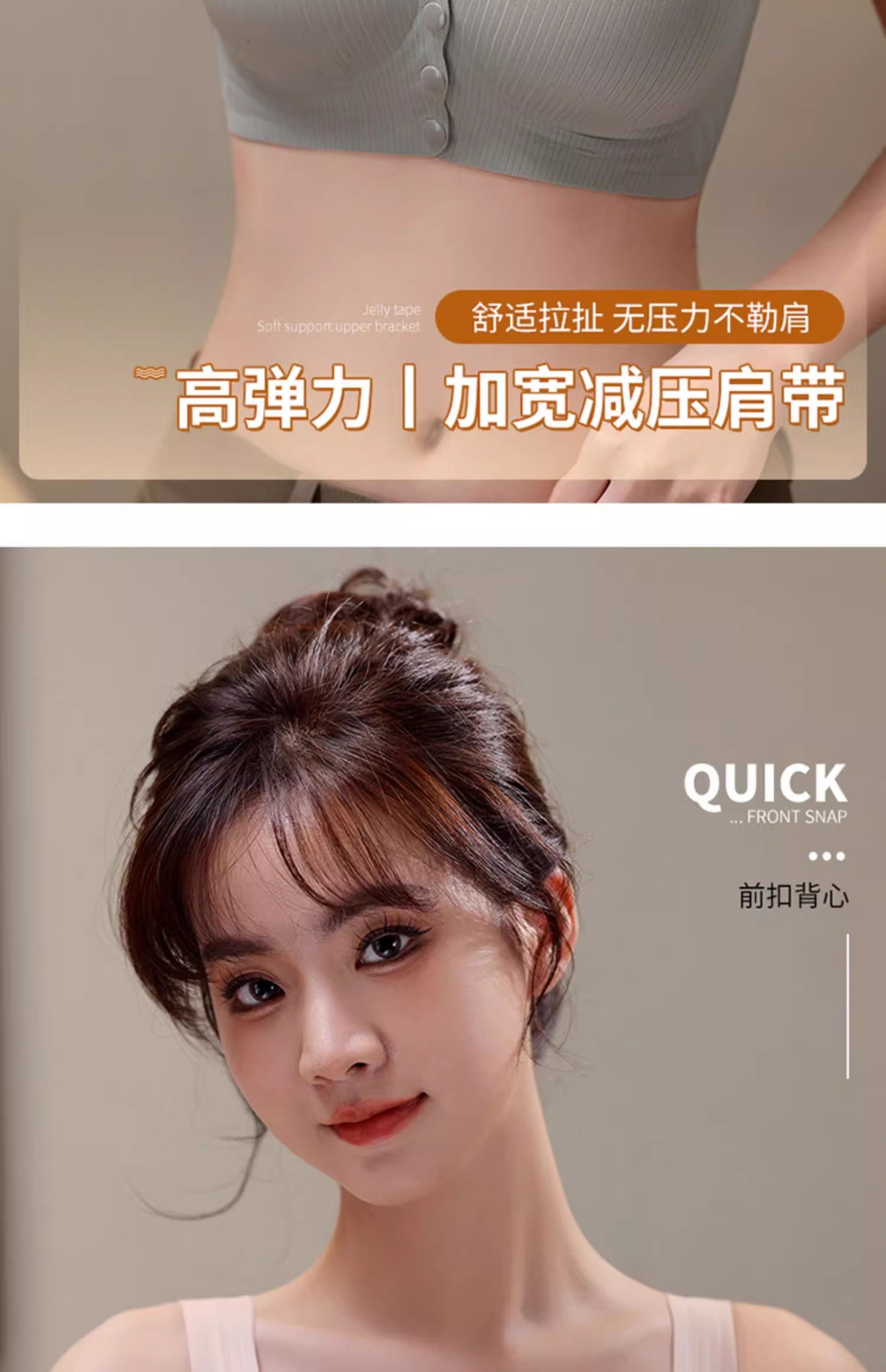 前釦無痕內衣媽媽防下垂聚攏乳膠文胸女無鋼圈大碼胸罩哺乳背心式