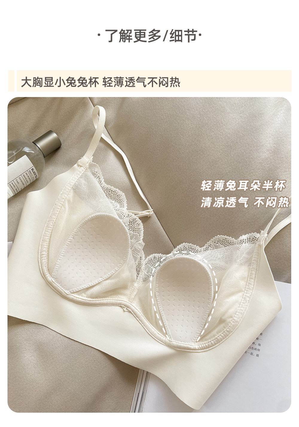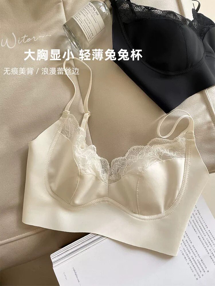 輕薄冰爽兔兔杯~法式蕾絲內衣女大碼胸罩大胸顯小無痕無鋼圈文胸