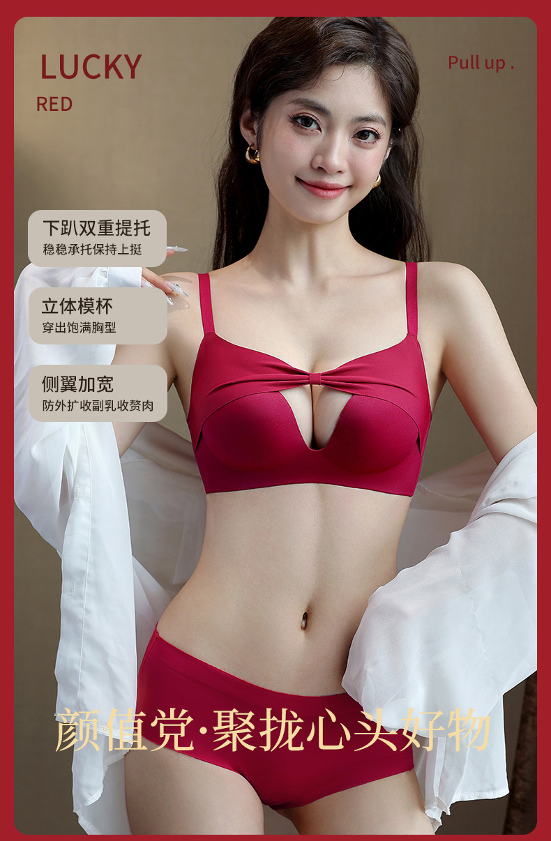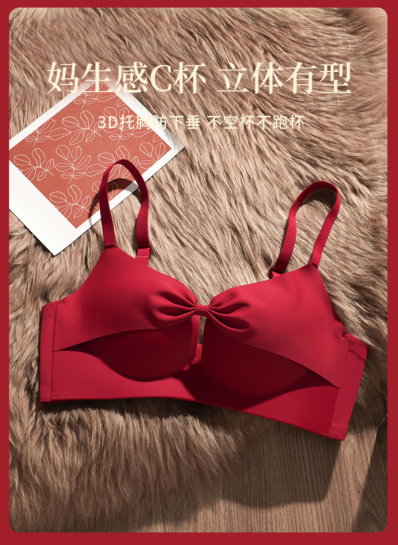 紅色內衣女內褲套裝小胸聚攏無鋼圈2026屬馬本命年結婚新娘文胸罩