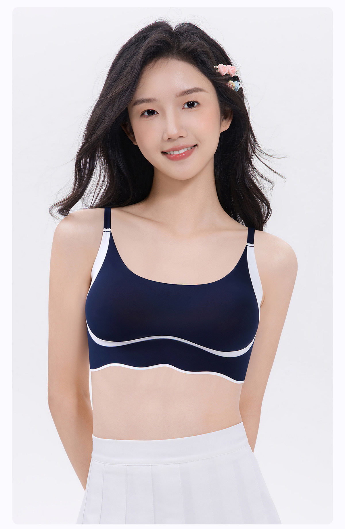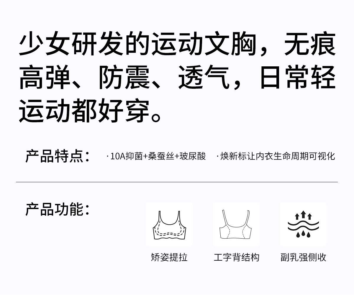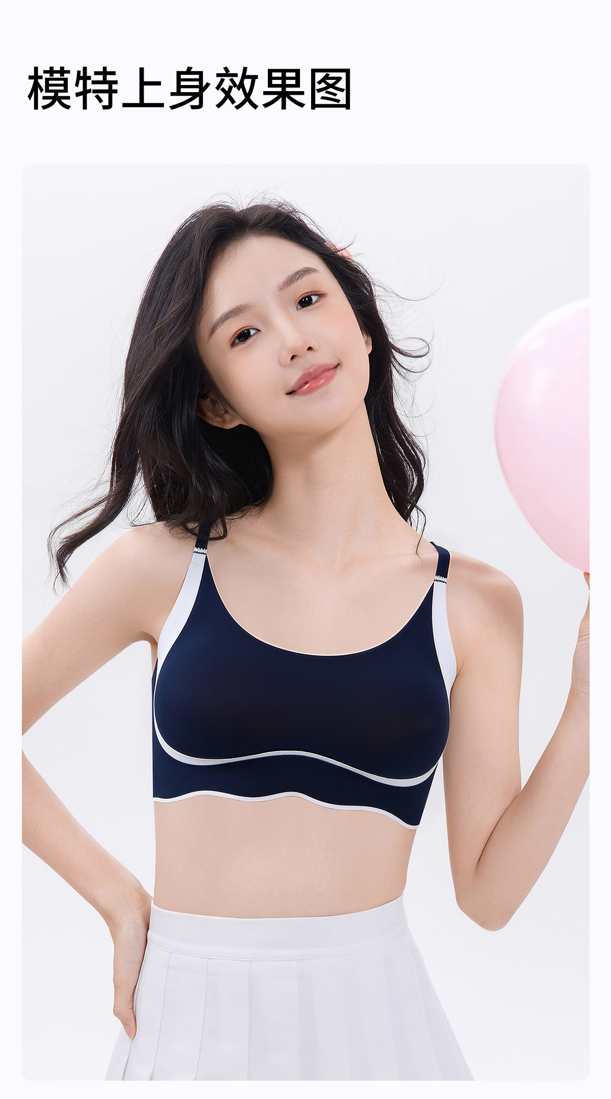 貓人內衣學生初中女少女文胸青少年發育期高中生無痕運動防震背心