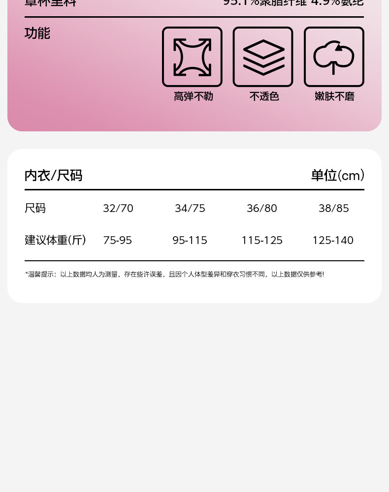 | 罩杯面料 | 聚酯纖維(滌綸) |