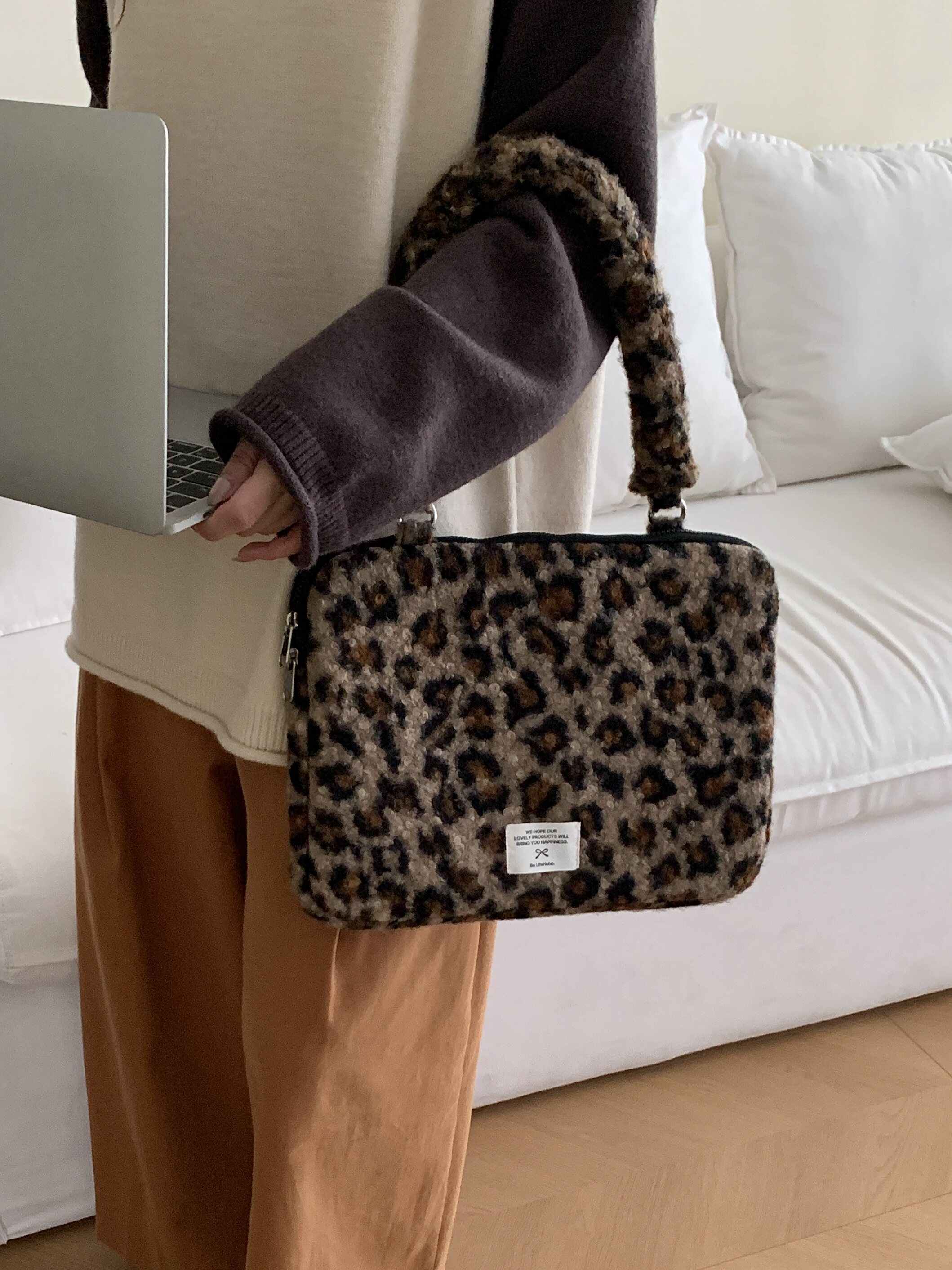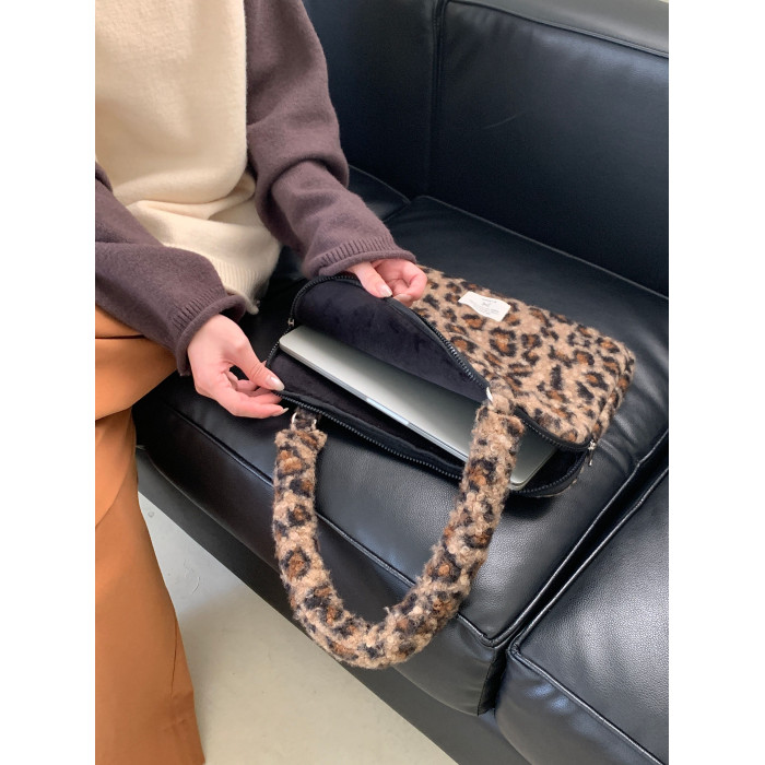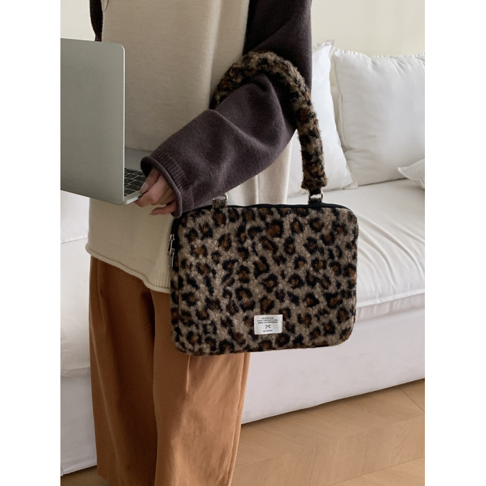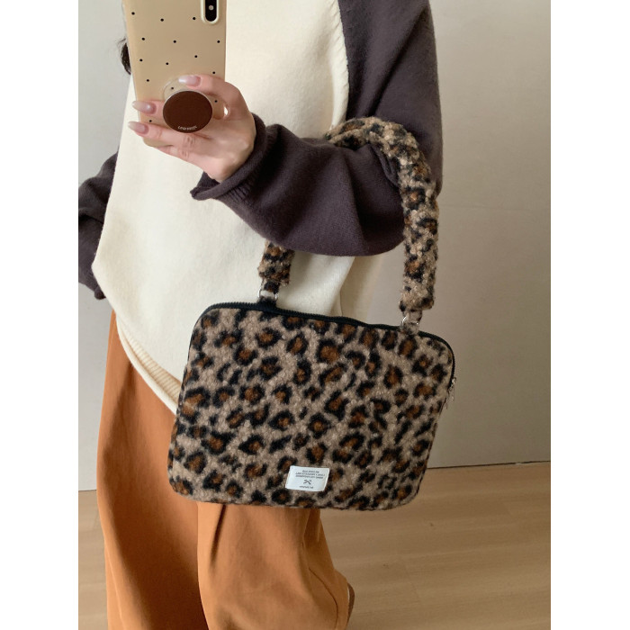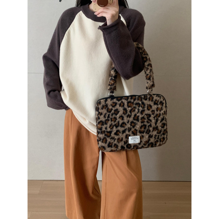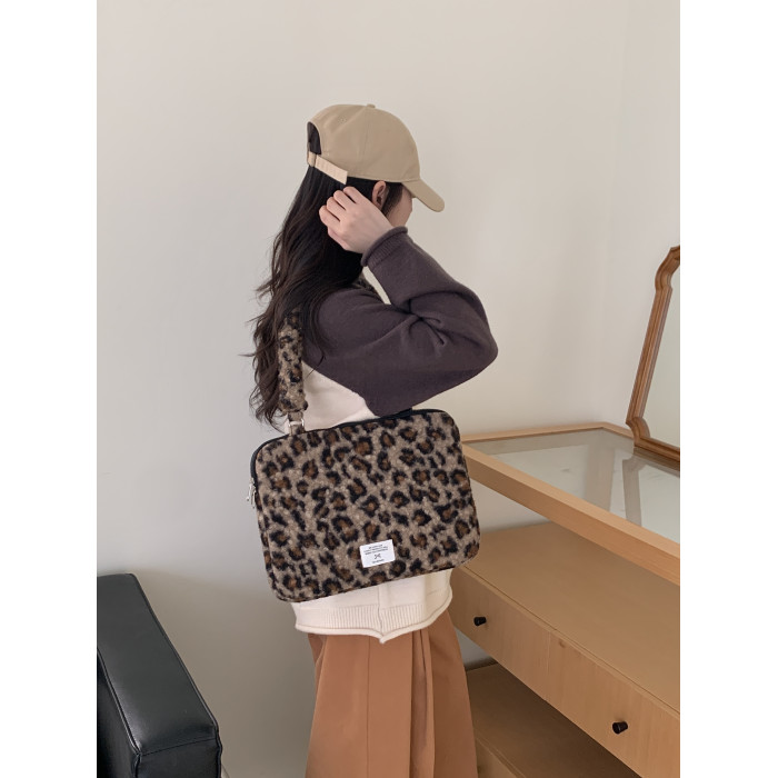 筆記型電腦包14寸2024新款女士單肩包通勤豹紋高級感適用蘋果macbookair13.3聯想華爲pro16寸收納內膽包