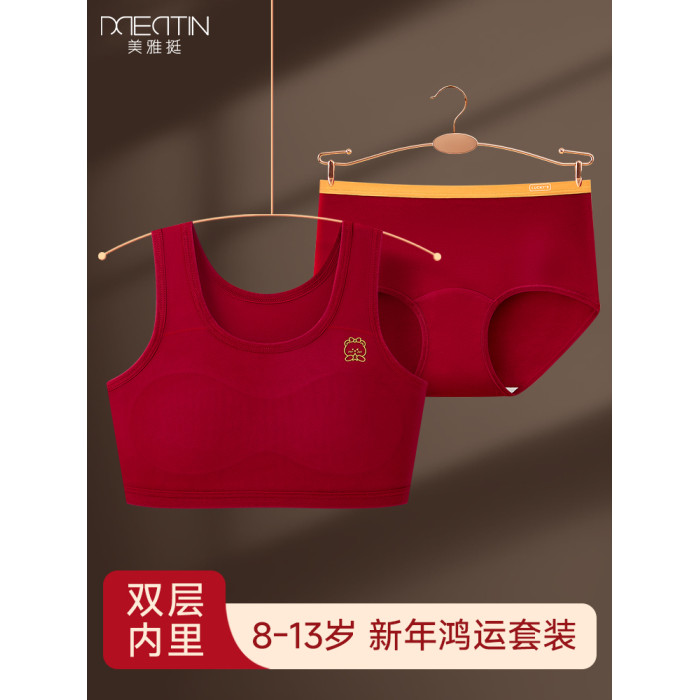 紅色背心學生12嵗女孩本命年內衣內褲套裝女大童純棉2026年屬馬年