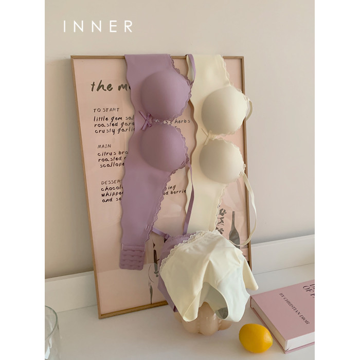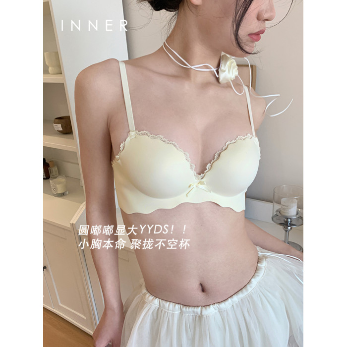 INNER櫻內 小胸聚攏內衣女套裝上薄下厚顯大不空杯光面文胸無鋼圈