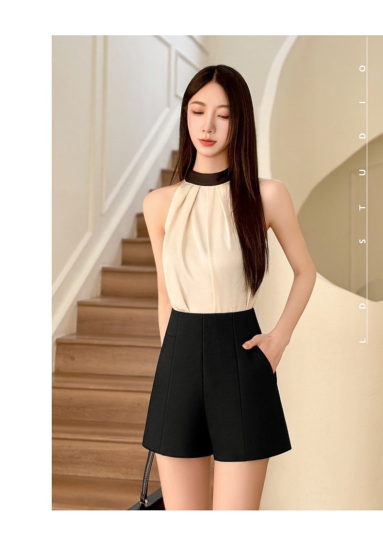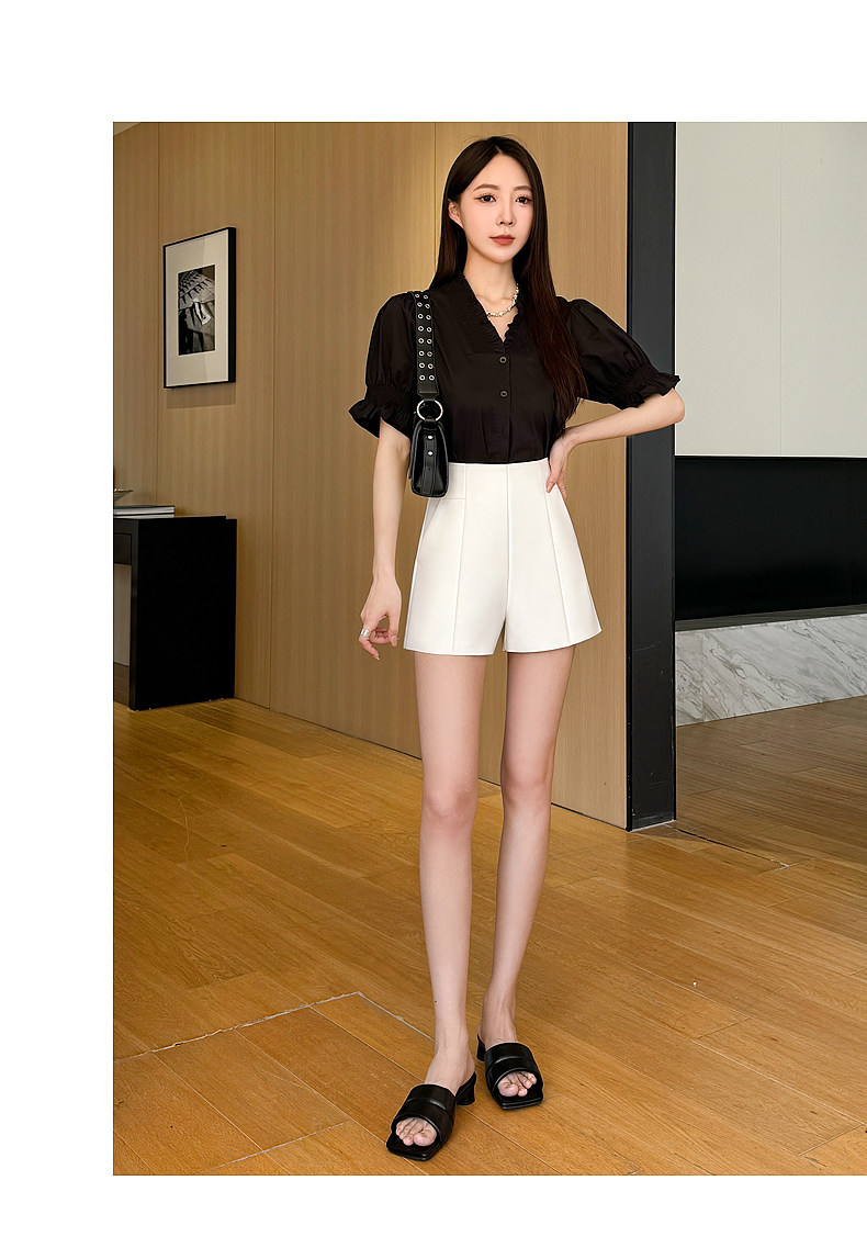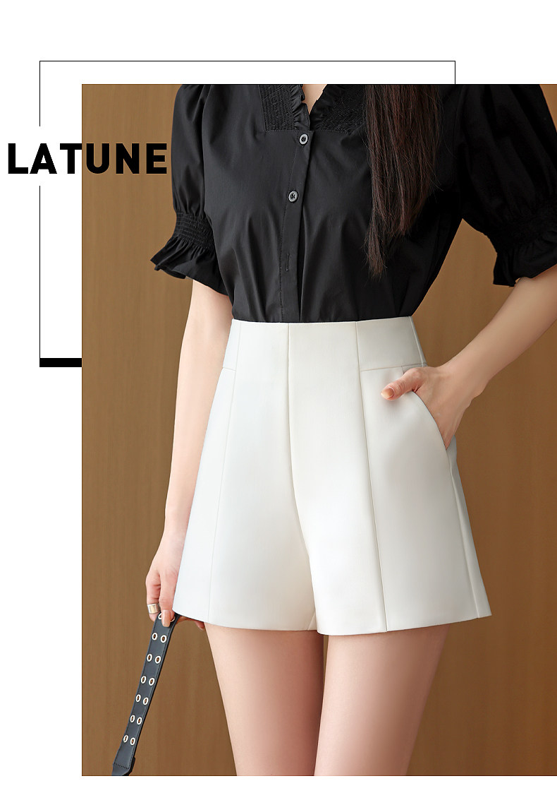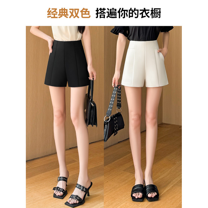 高腰短褲女春夏季2026新款外穿濶腿氣質西裝黑色a字顯瘦白色雪紡
