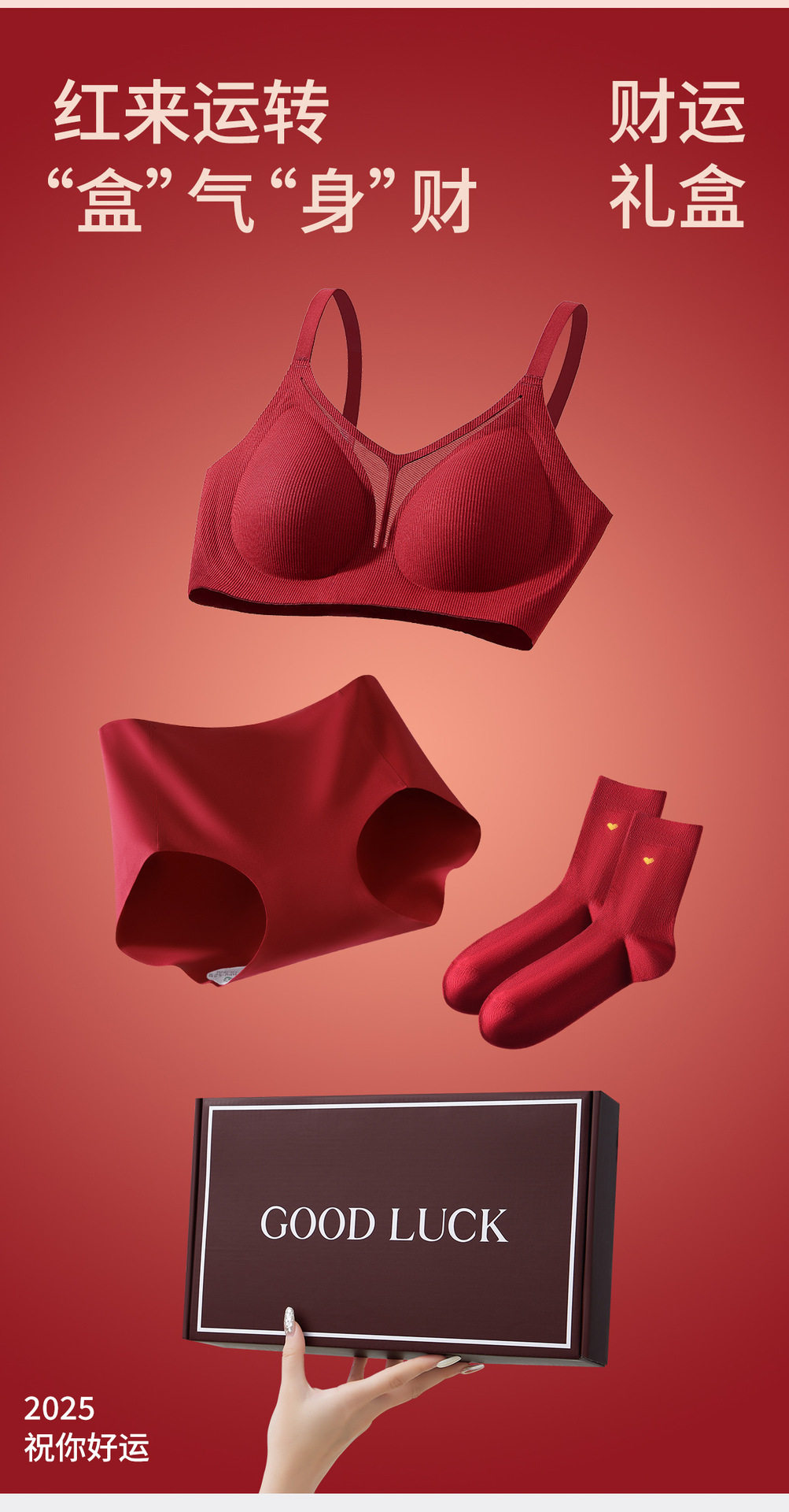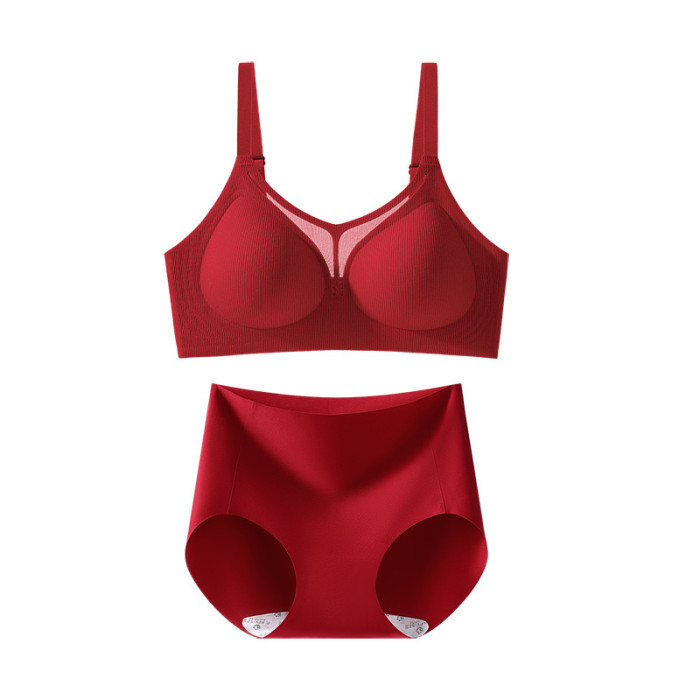 浪莎本命年馬年紅色內衣小胸聚攏結婚新娘禮盒女無痕內褲文胸套裝