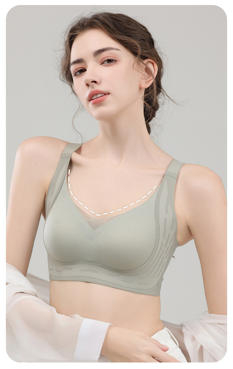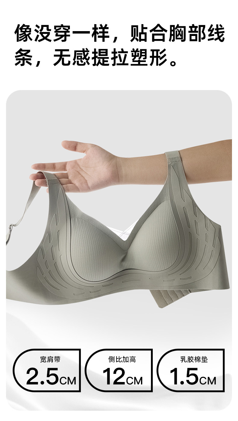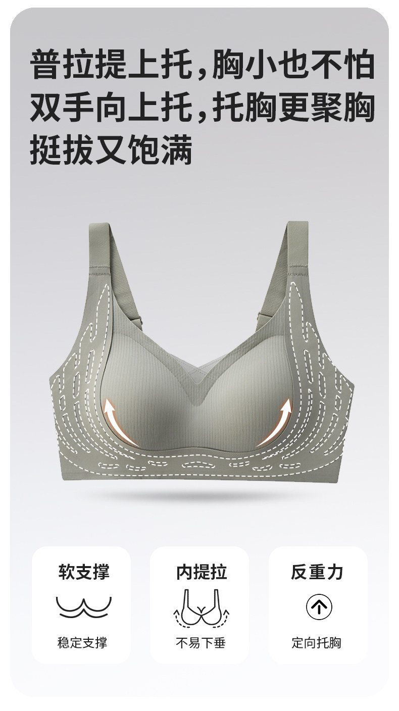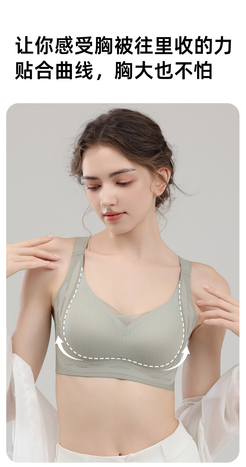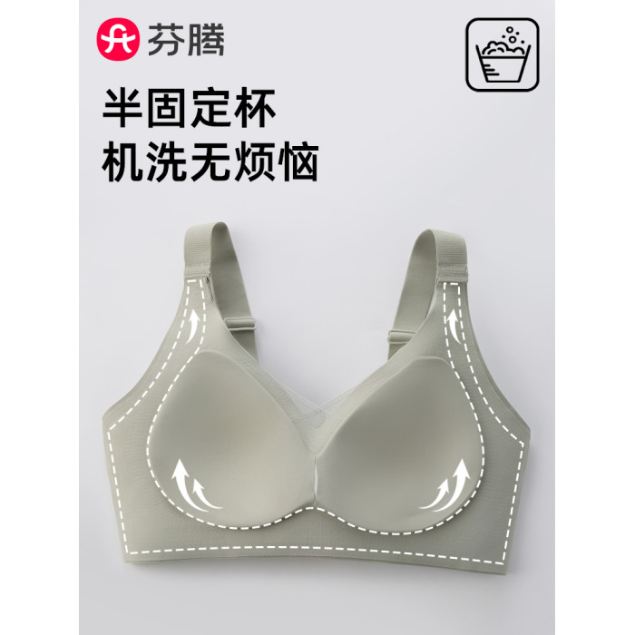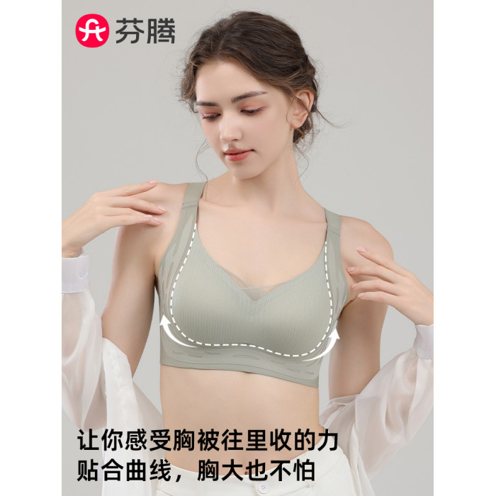 芬騰無痕內衣女大胸顯小胸聚攏防下垂收副乳大碼美背文胸罩夏薄款