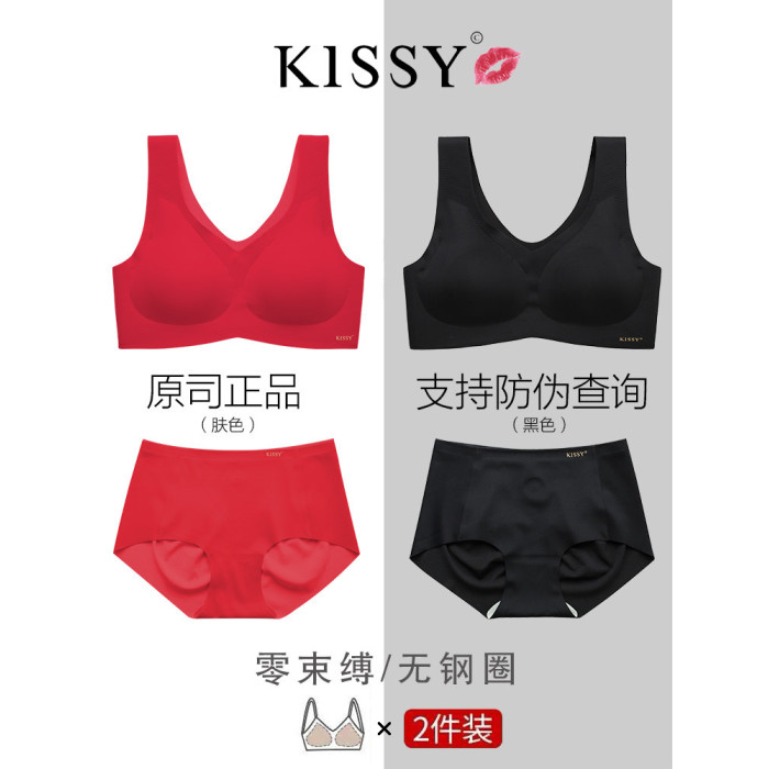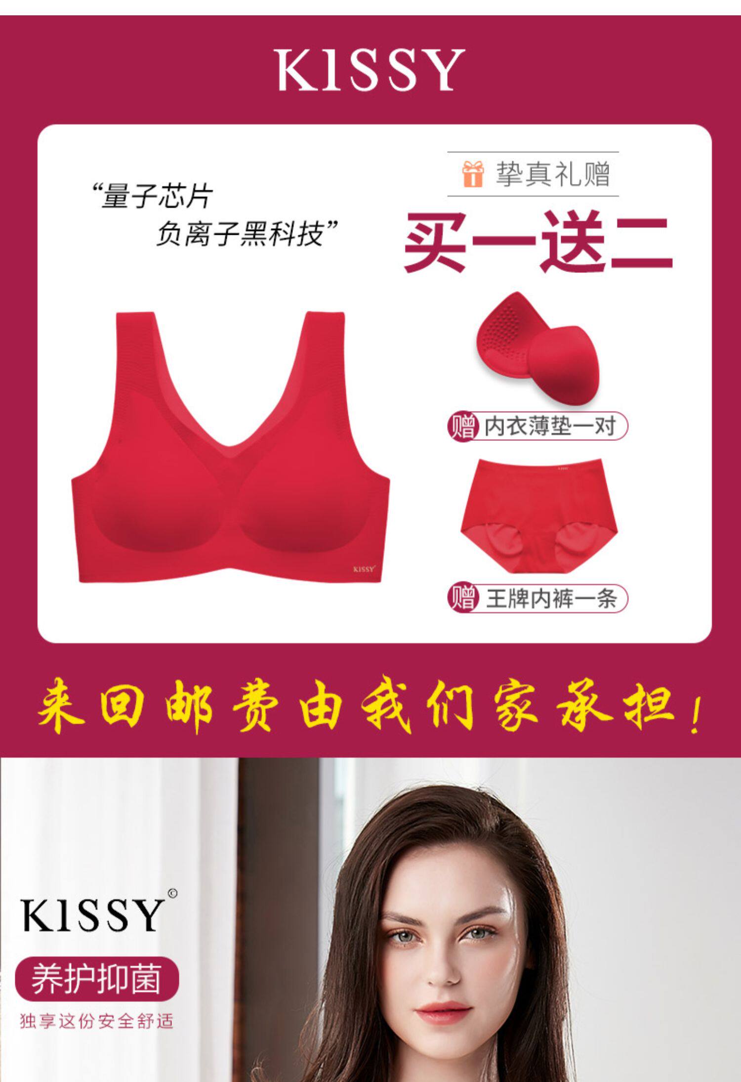 kissy內衣女無鋼圈文胸本命年紅色套裝虎年薄款聚攏結婚新娘胸罩