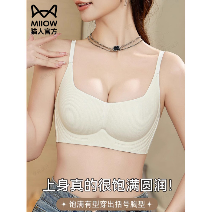 貓人內衣女小胸聚攏顯大無痕無鋼圈收副乳軟支撐上托防下垂文胸