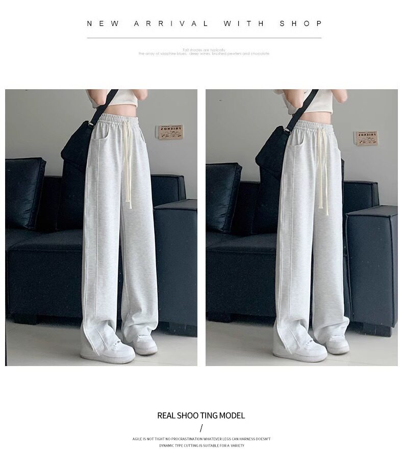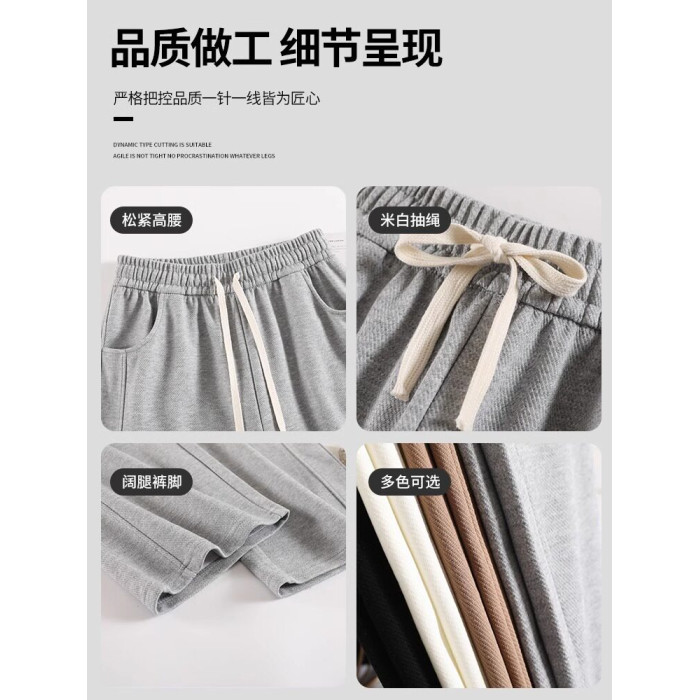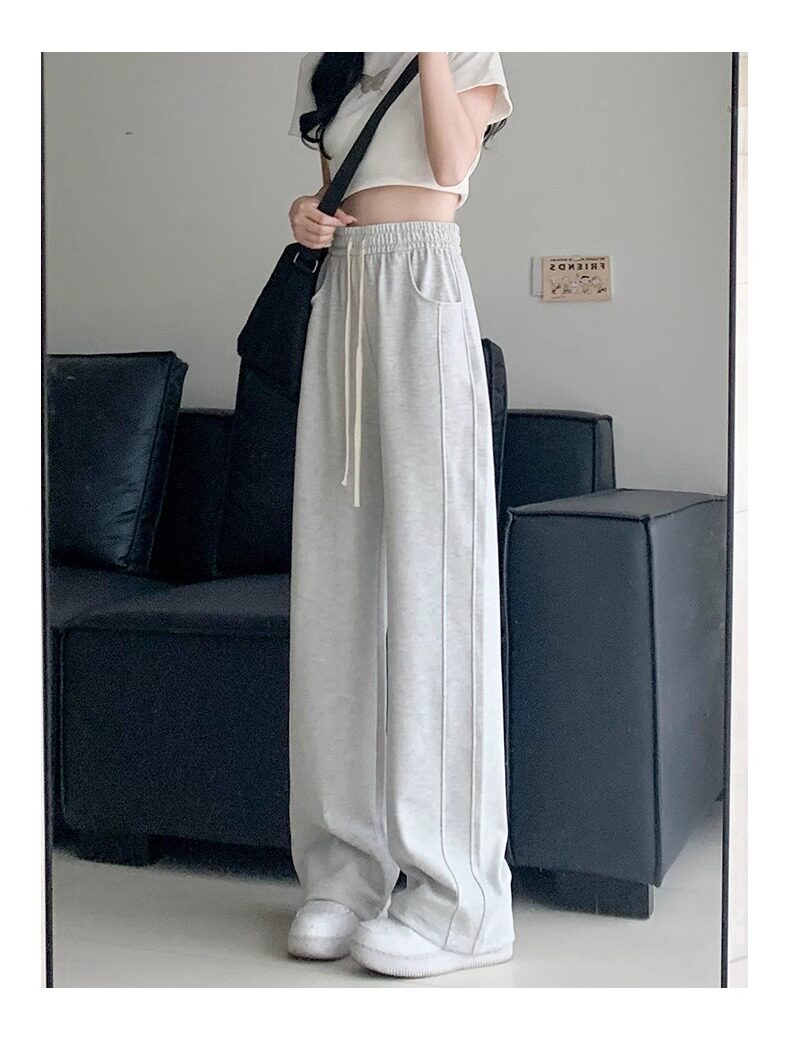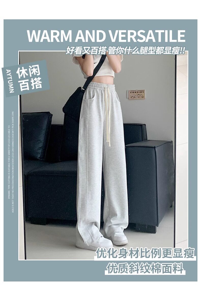 灰色運動褲女春秋夏季2025新款小個子寬鬆直筒衛褲高腰休閒濶腿褲