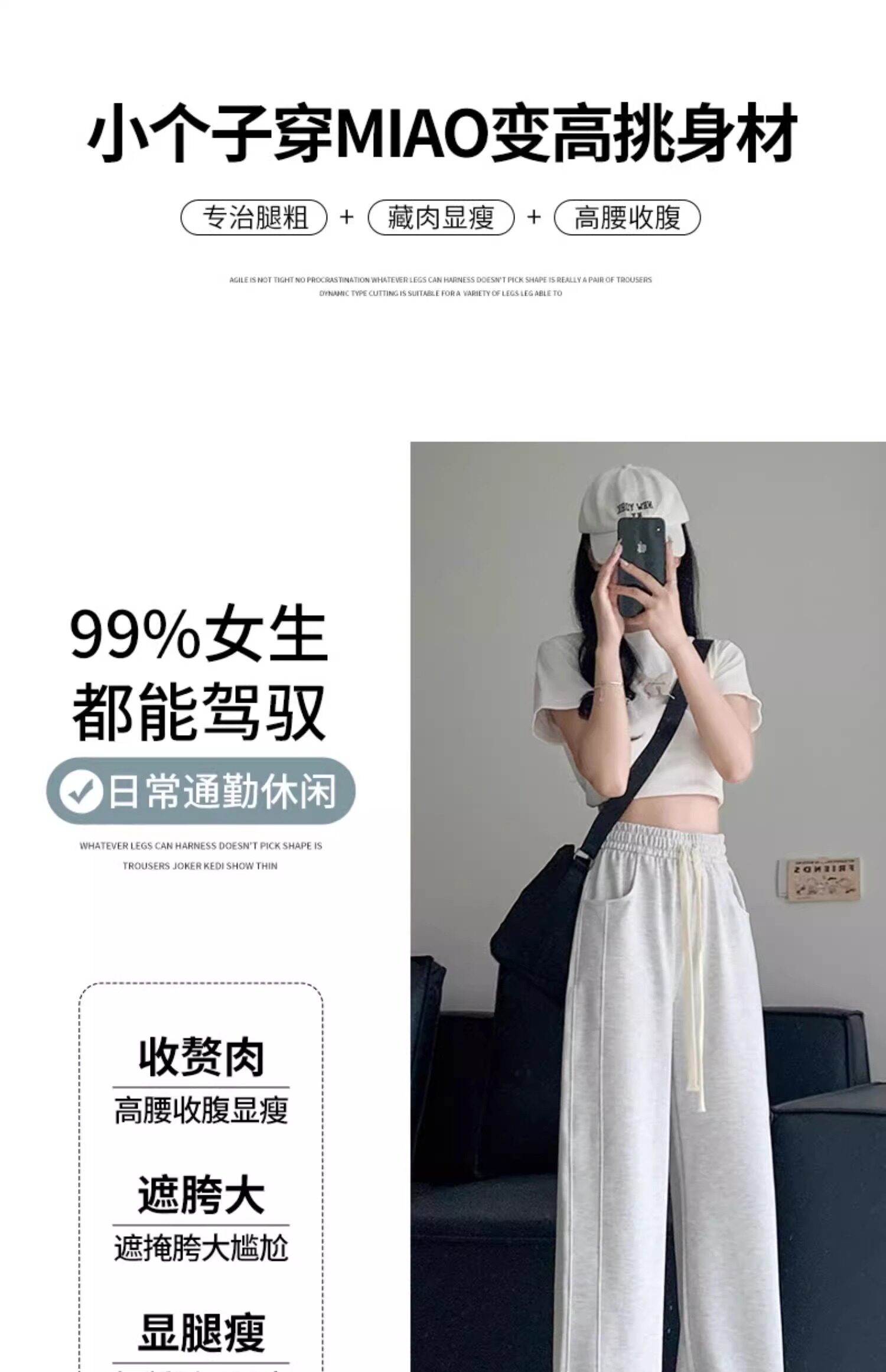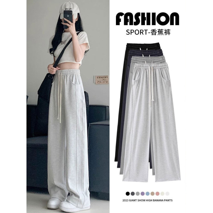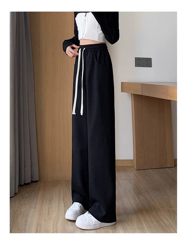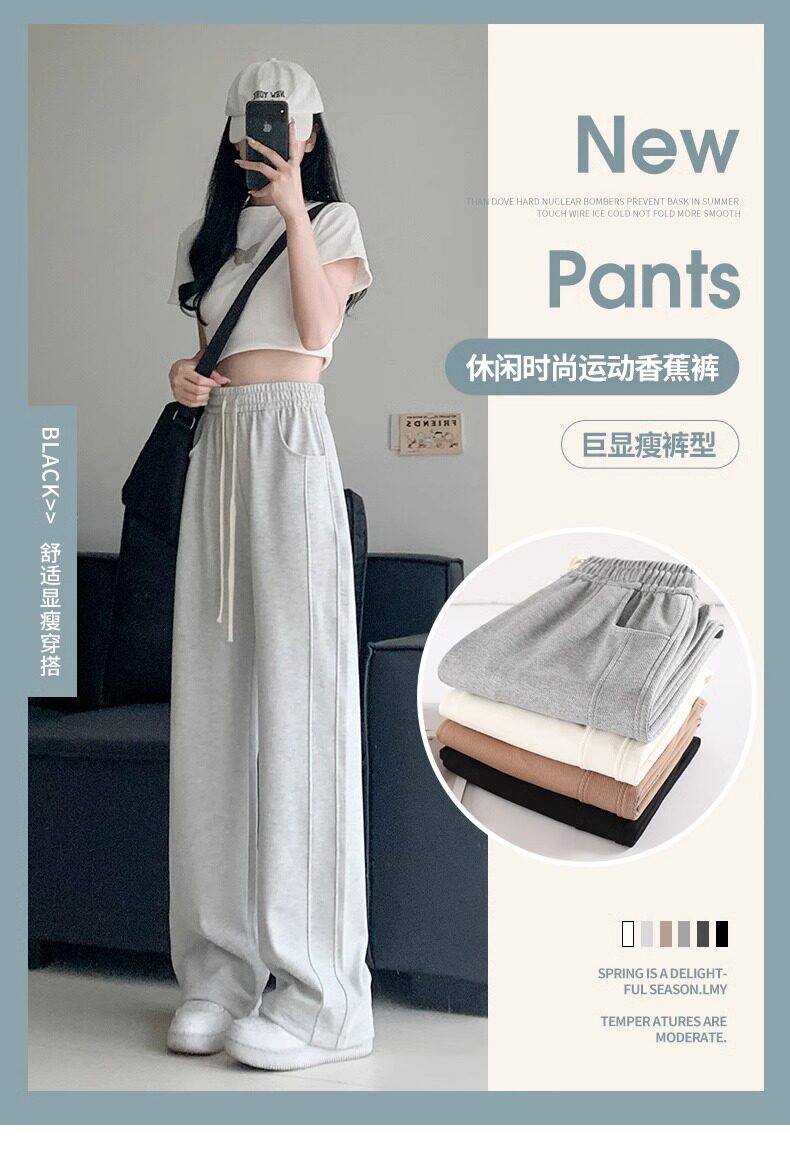 灰色運動褲女春秋夏季2025新款小個子寬鬆直筒衛褲高腰休閒濶腿褲