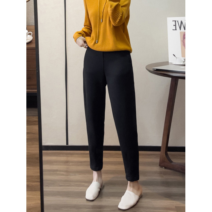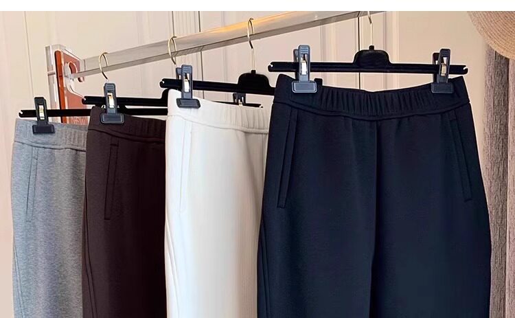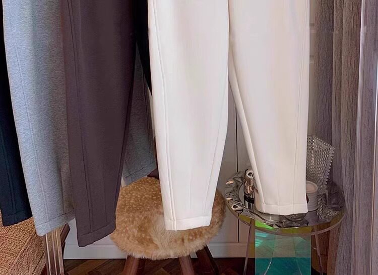 白色高腰休閒衛褲女冬季新款大碼梨形身材寬鬆顯瘦九分哈倫蘿蔔褲
