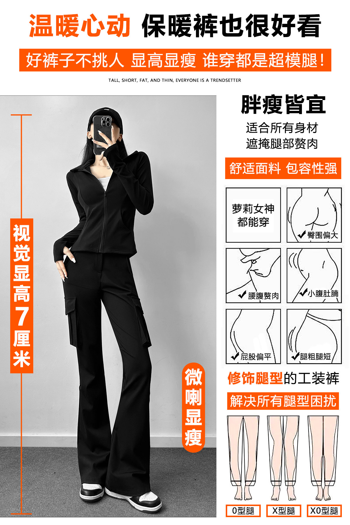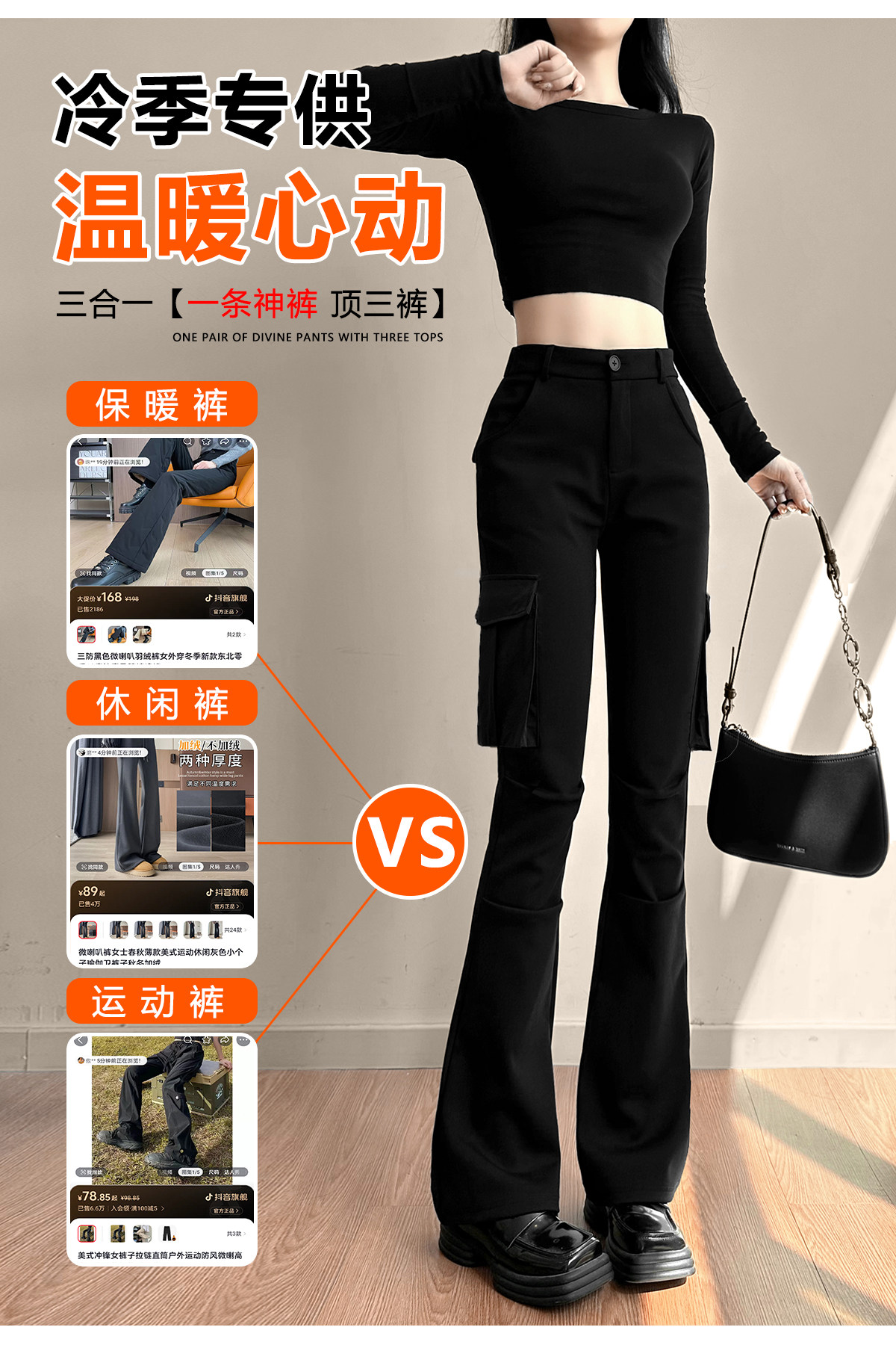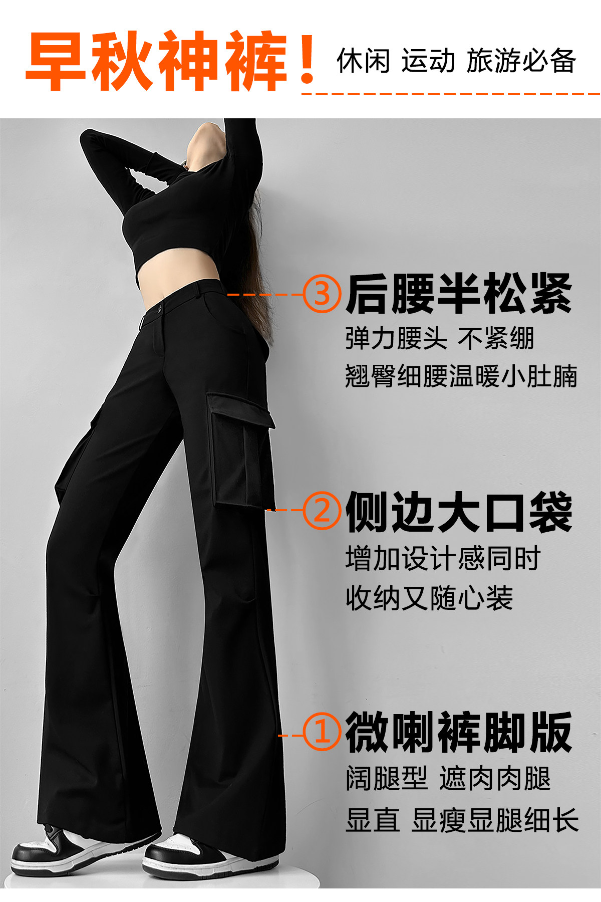 黑色工裝褲女2026新款秋冬小個子厚款顯瘦流行休閒運動微喇叭褲子