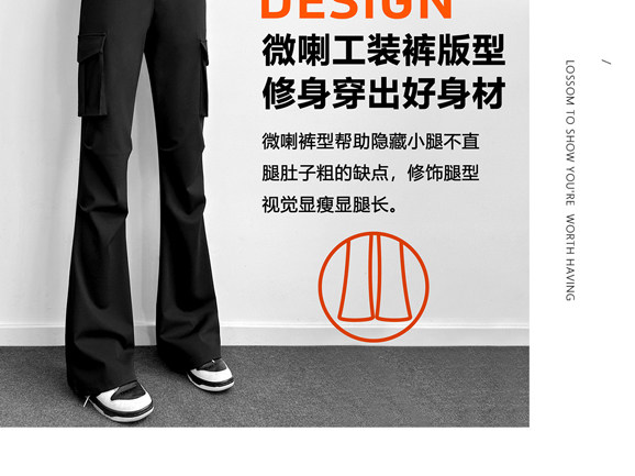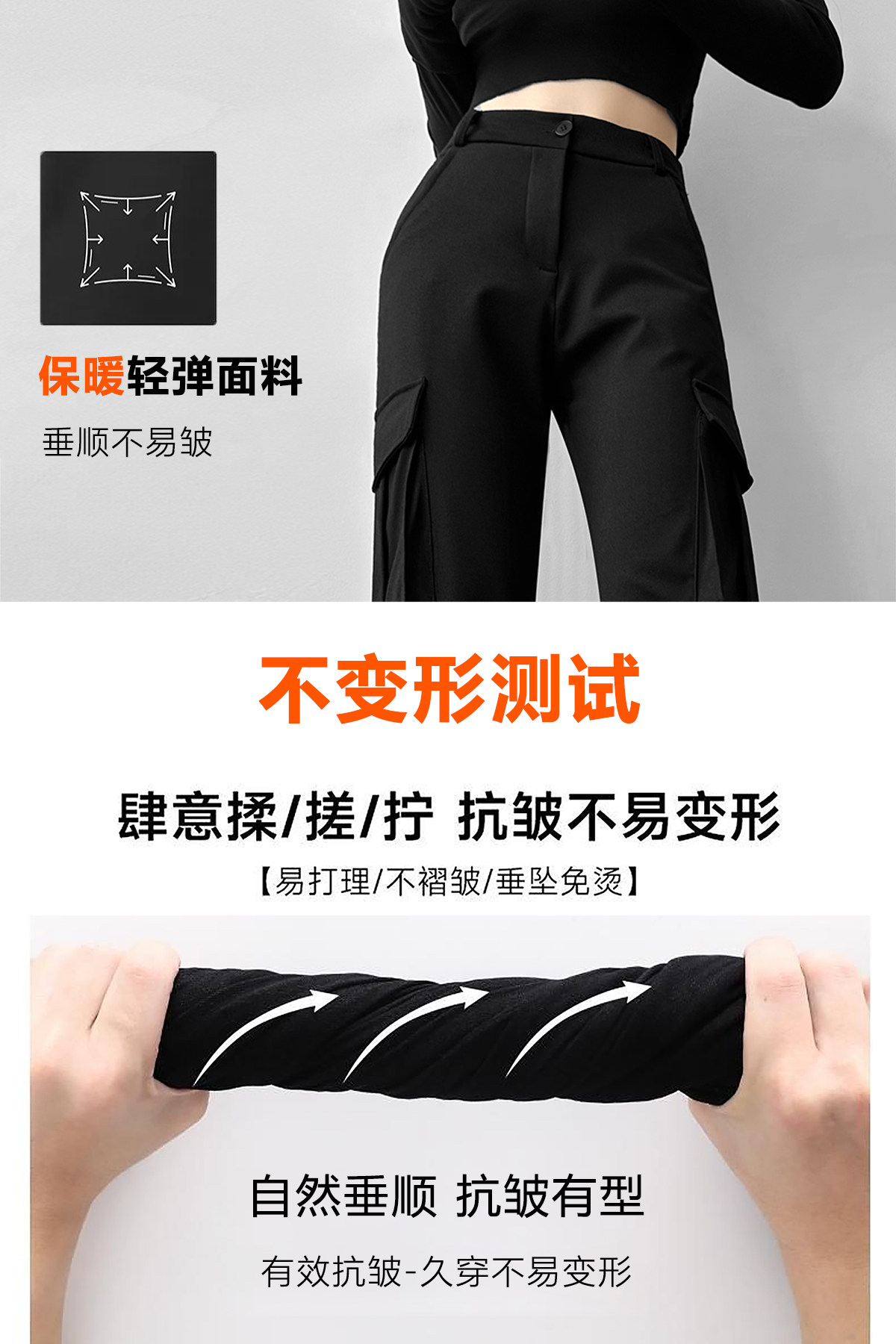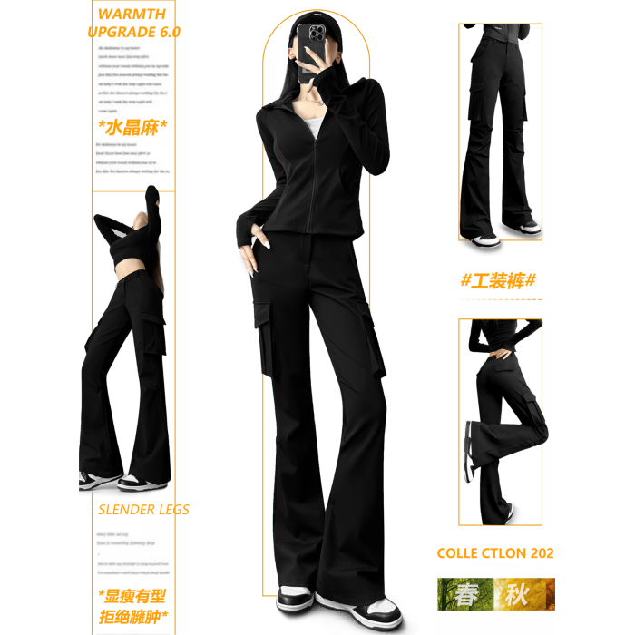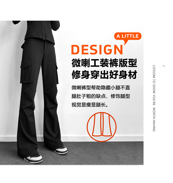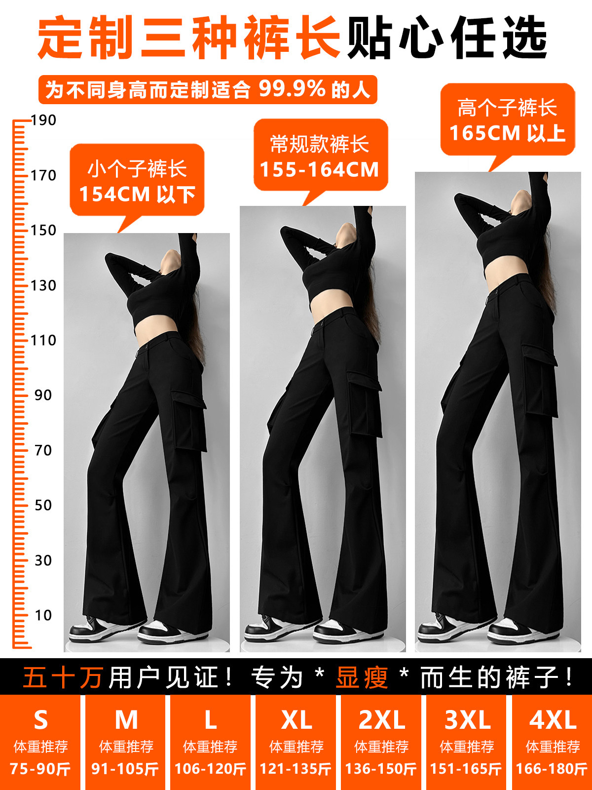 黑色工裝褲女2026新款秋冬小個子厚款顯瘦流行休閒運動微喇叭褲子