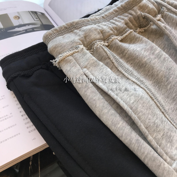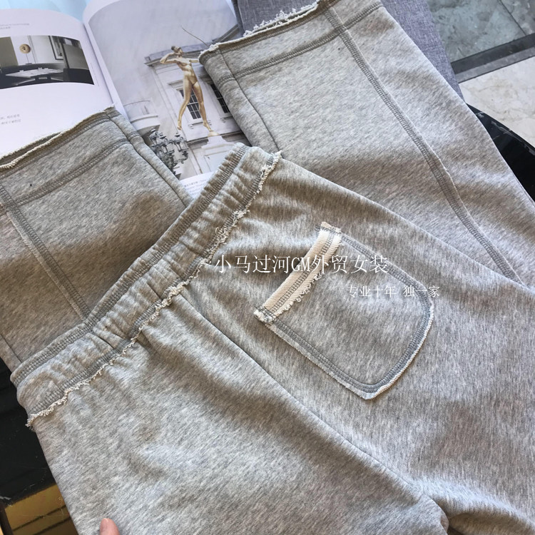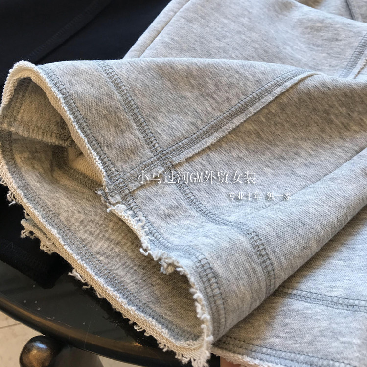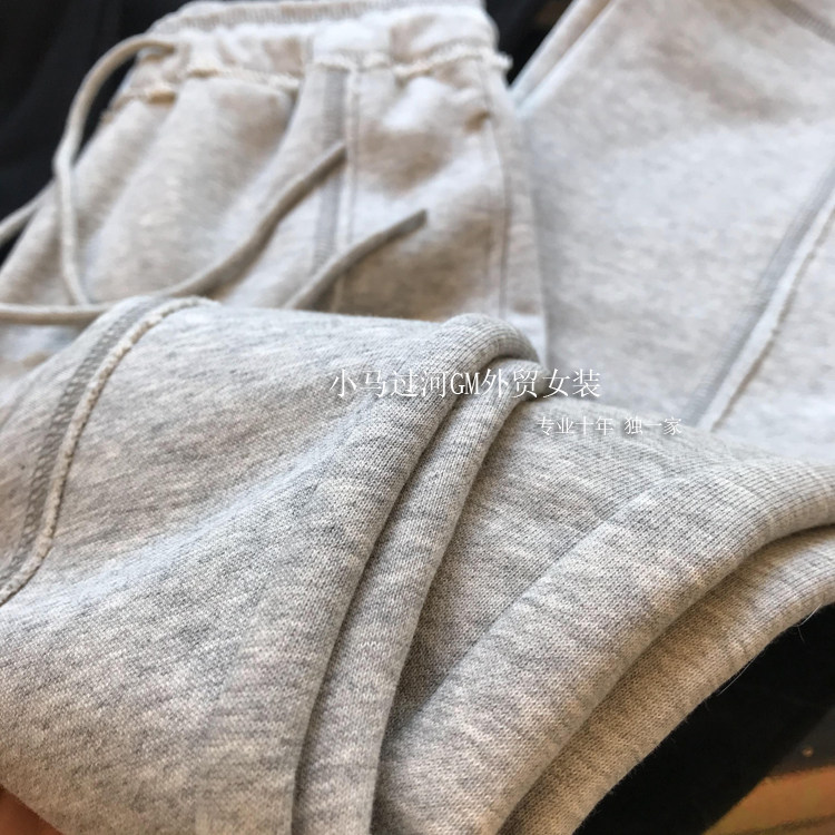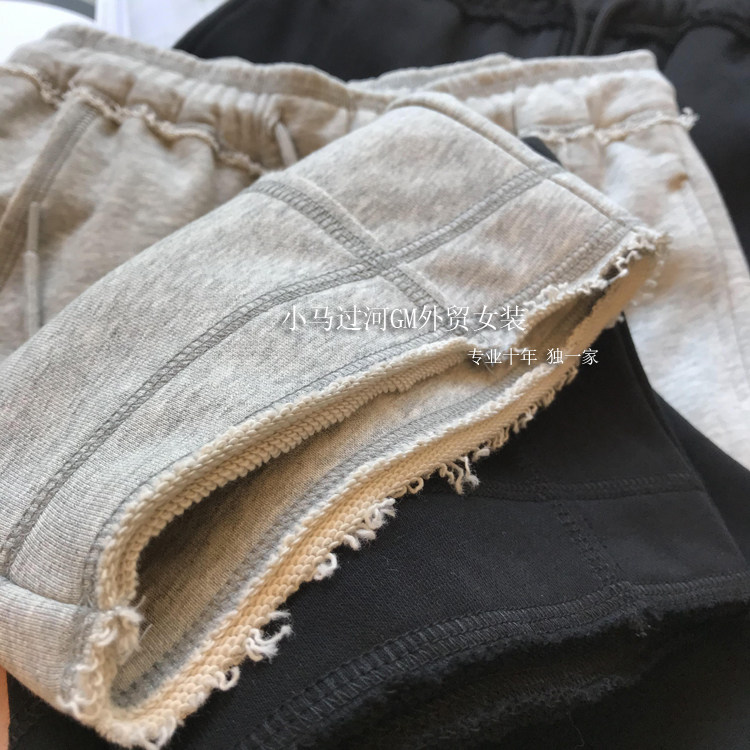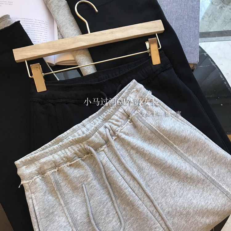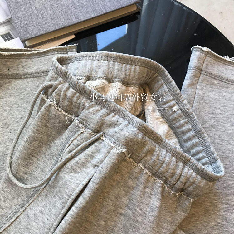 秋季2025新款灰色運動褲顯瘦高腰直筒濶腿褲毛邊休閒褲女春秋褲子
