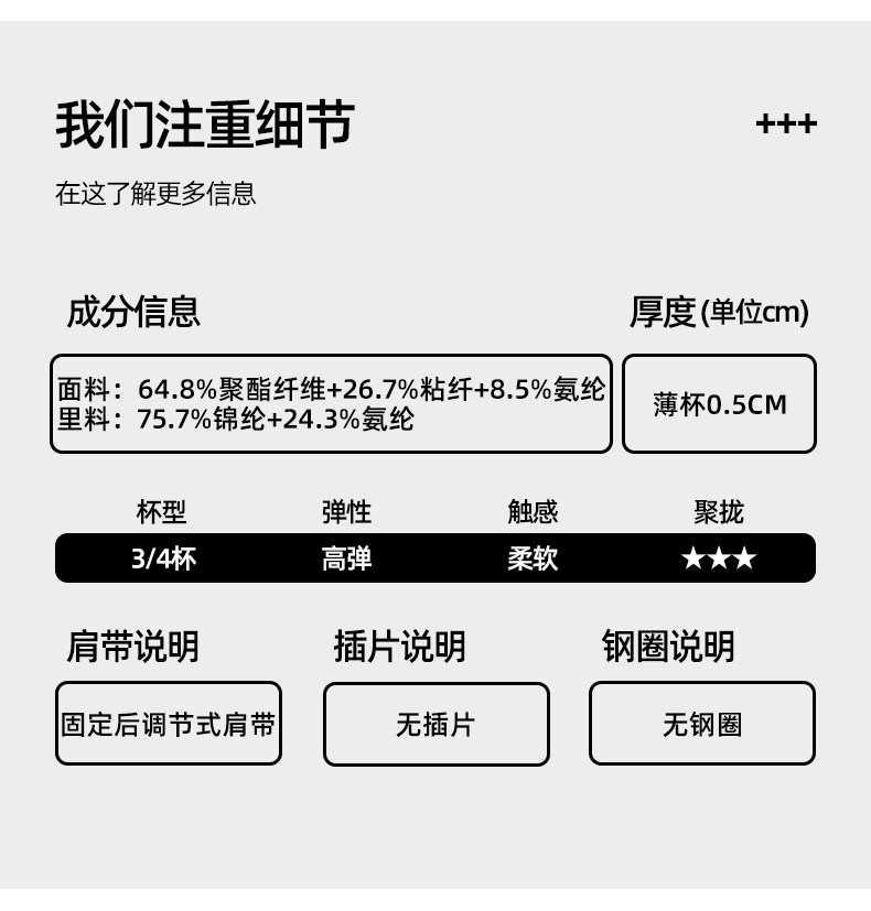| 罩杯外層材質 | 聚酯纖維(滌綸) |
