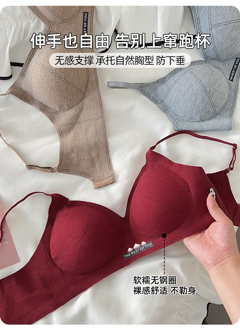 六隻兔子小攏杯無痕內衣女小胸聚攏側收副乳胸罩舒適無鋼圈文胸
