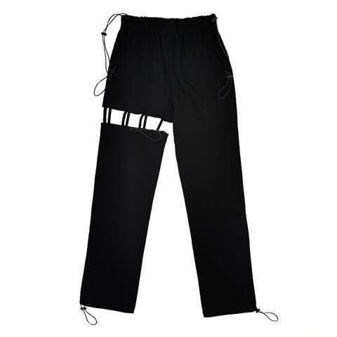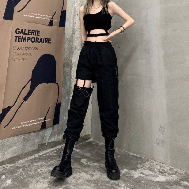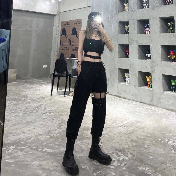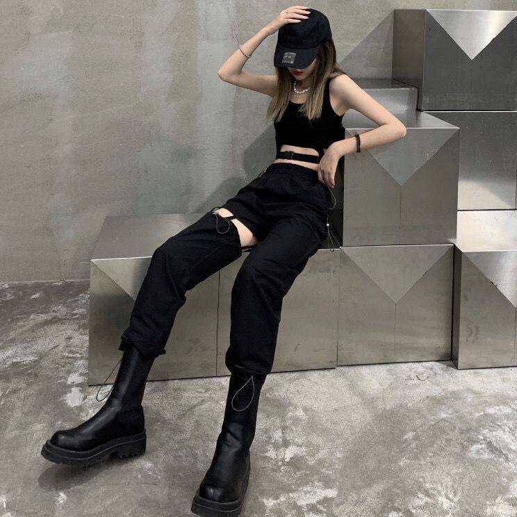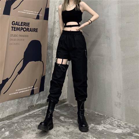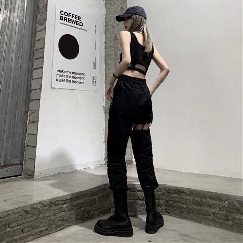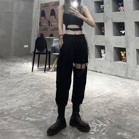 褲子女夏季寬鬆直筒長褲高腰寬鬆鏤空褲跳舞工裝濶腿休閒褲潮ins