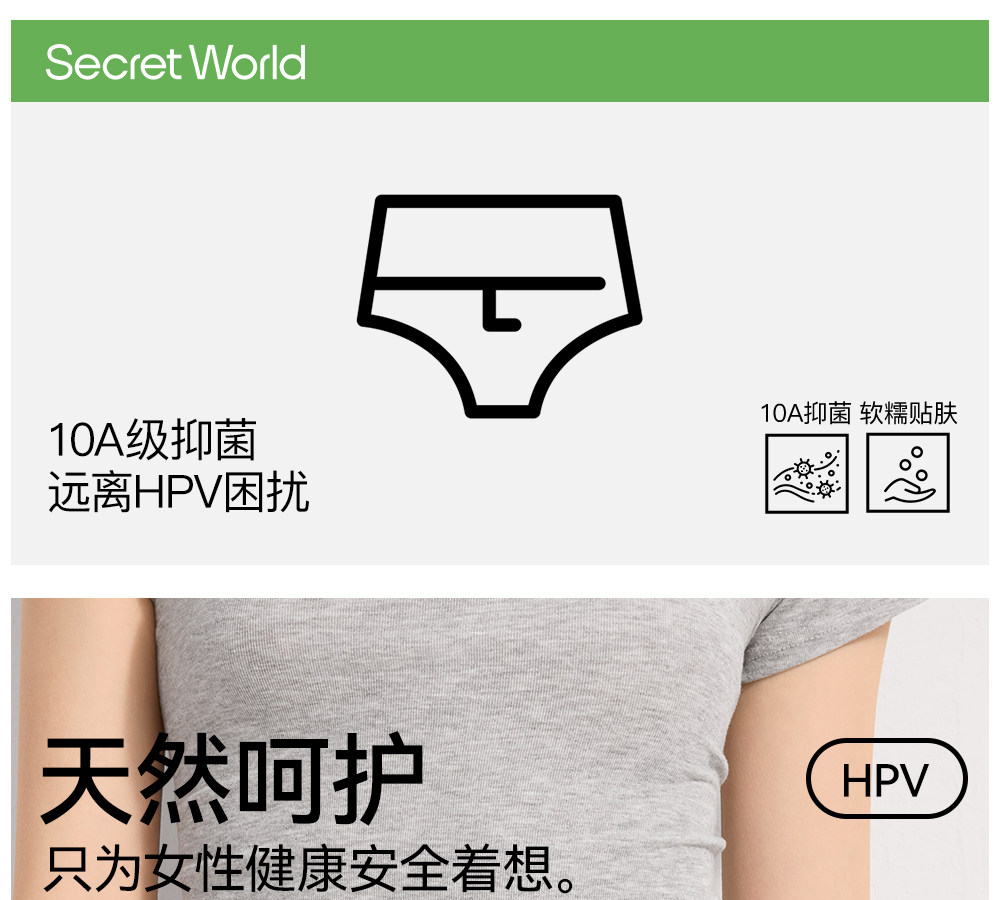 sw∣預防HPV內褲女純棉10A抑菌加長檔中腰透氣100%全棉女士三角褲
