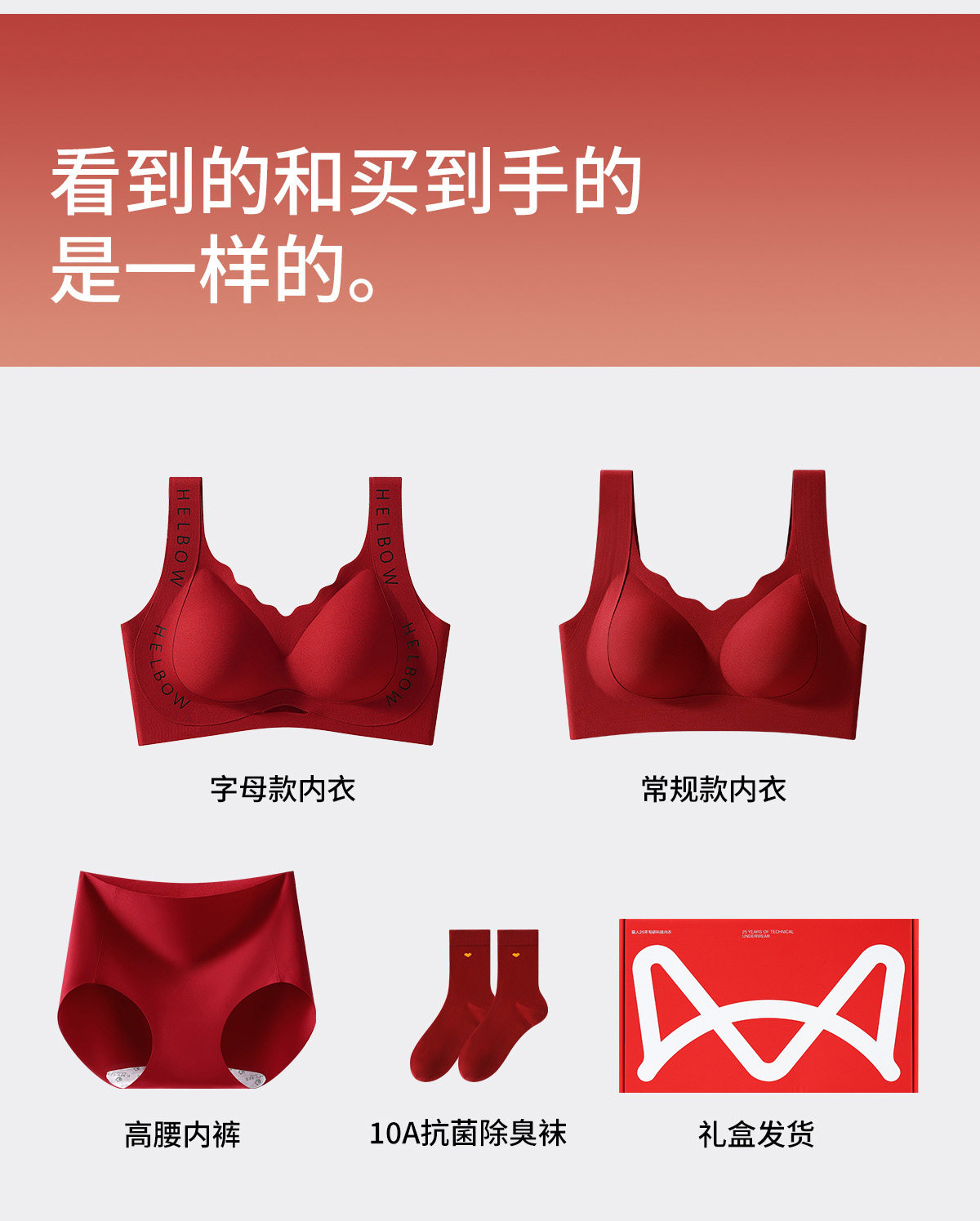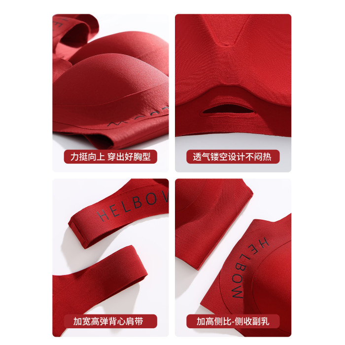 貓人紅色本命年內衣女小胸聚攏新娘結婚專用2026馬年無痕文胸套裝