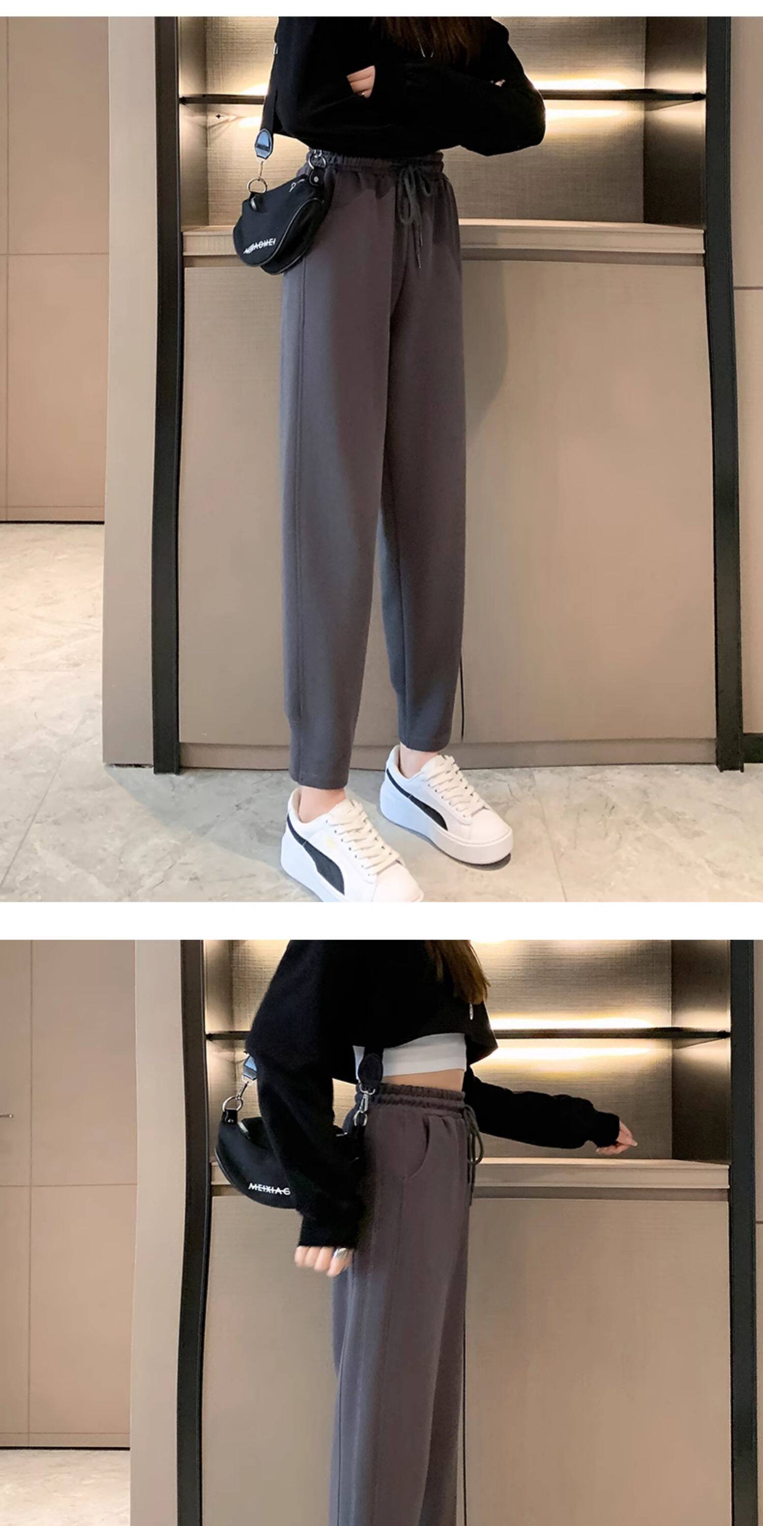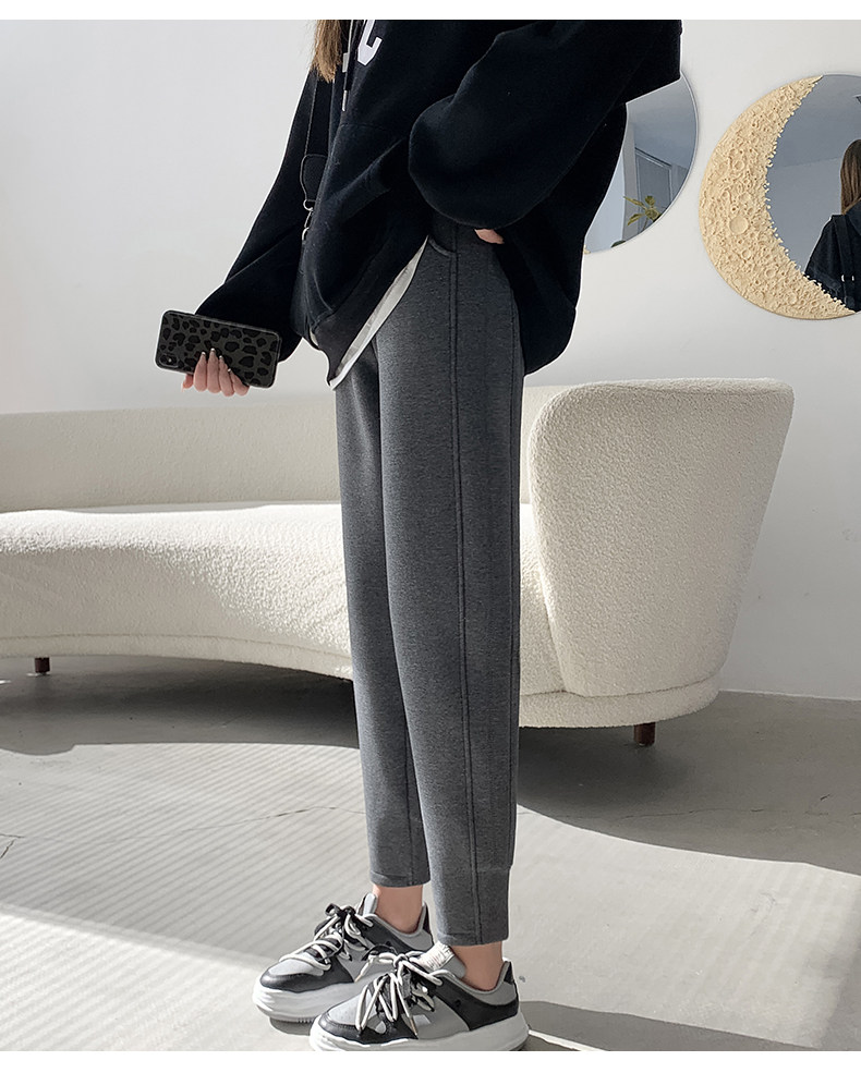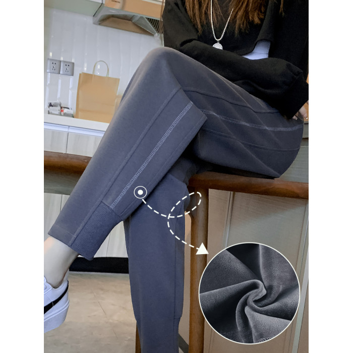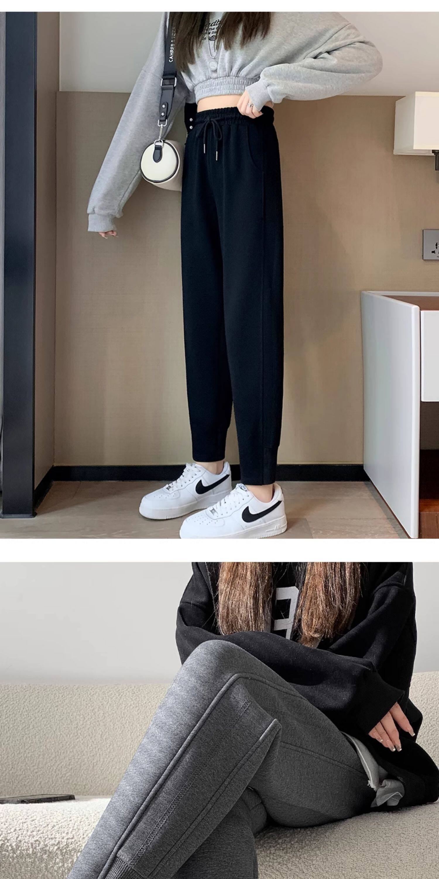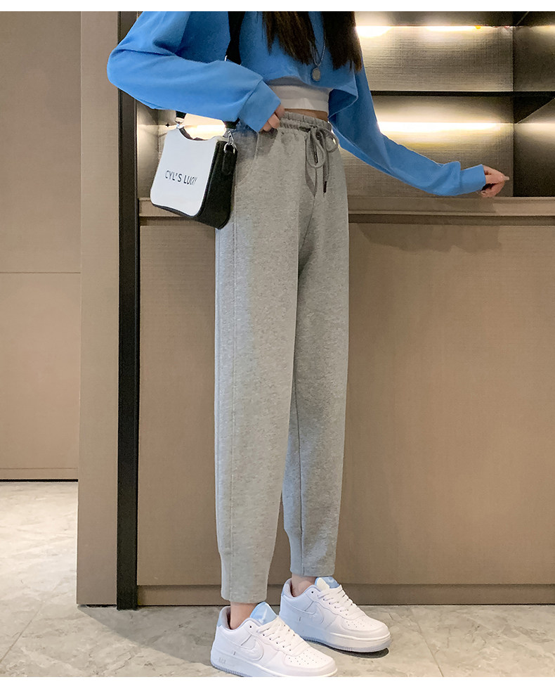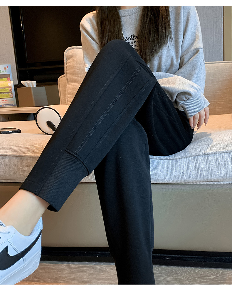 秋冬季寬鬆運動褲子女2026新款衛褲小個子高腰加絨加厚束腳哈倫褲
