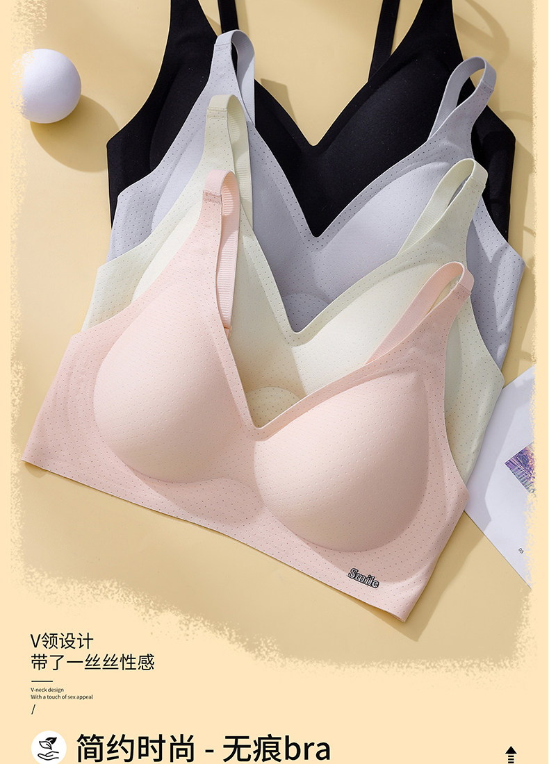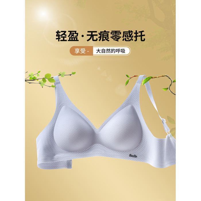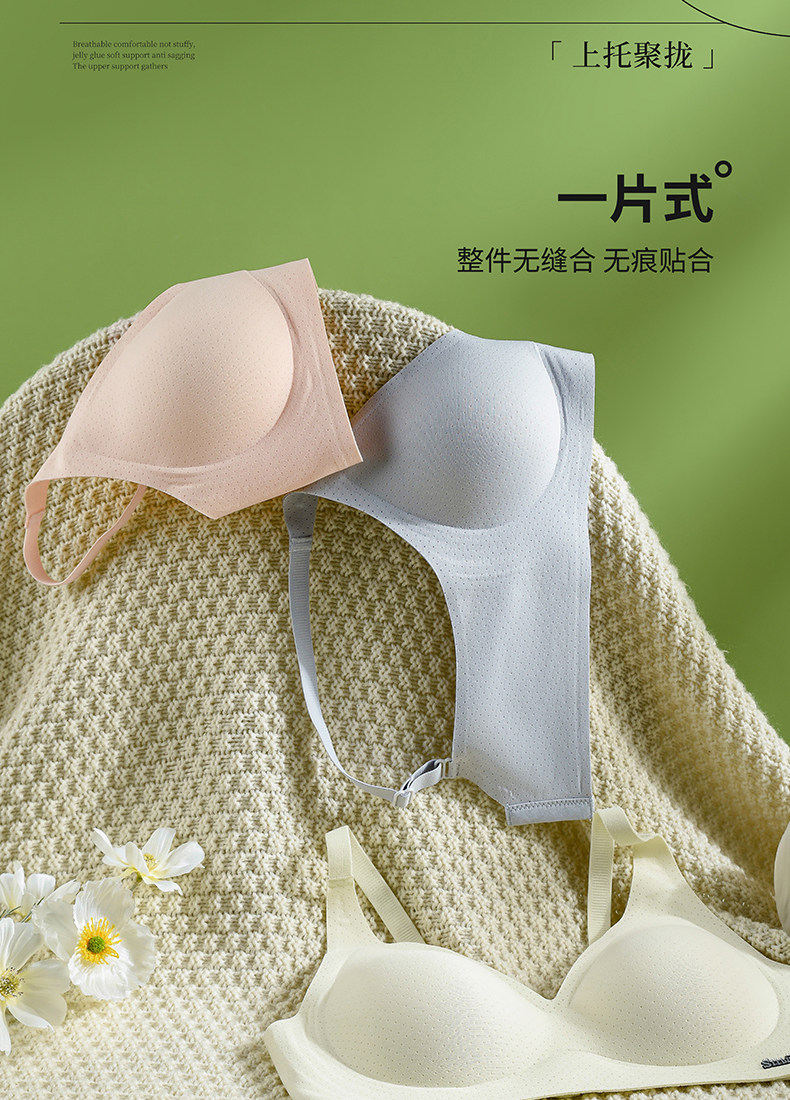 雲朵無痕內衣女夏季薄款透氣小胸聚攏一片式舒適裸感固定杯文胸罩