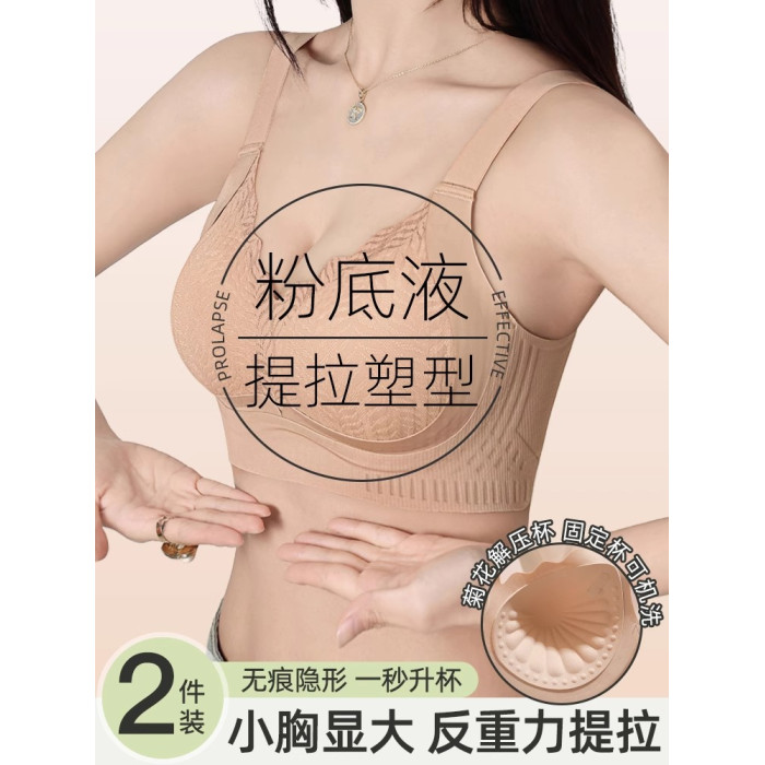 無痕提拉小胸聚攏內衣女調整型收副乳防下垂上托無鋼圈全罩杯文胸