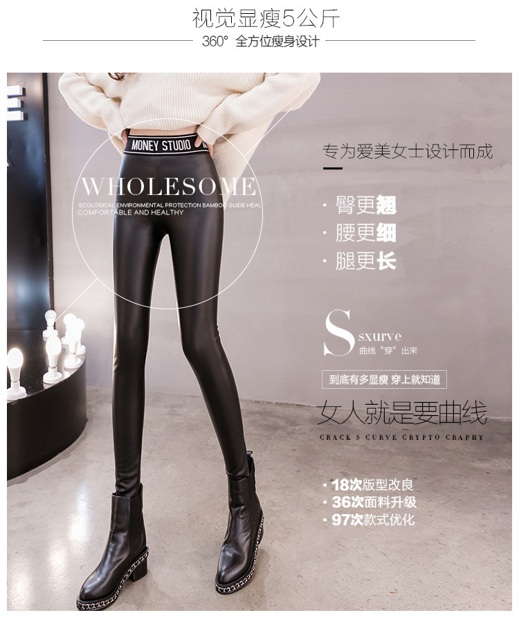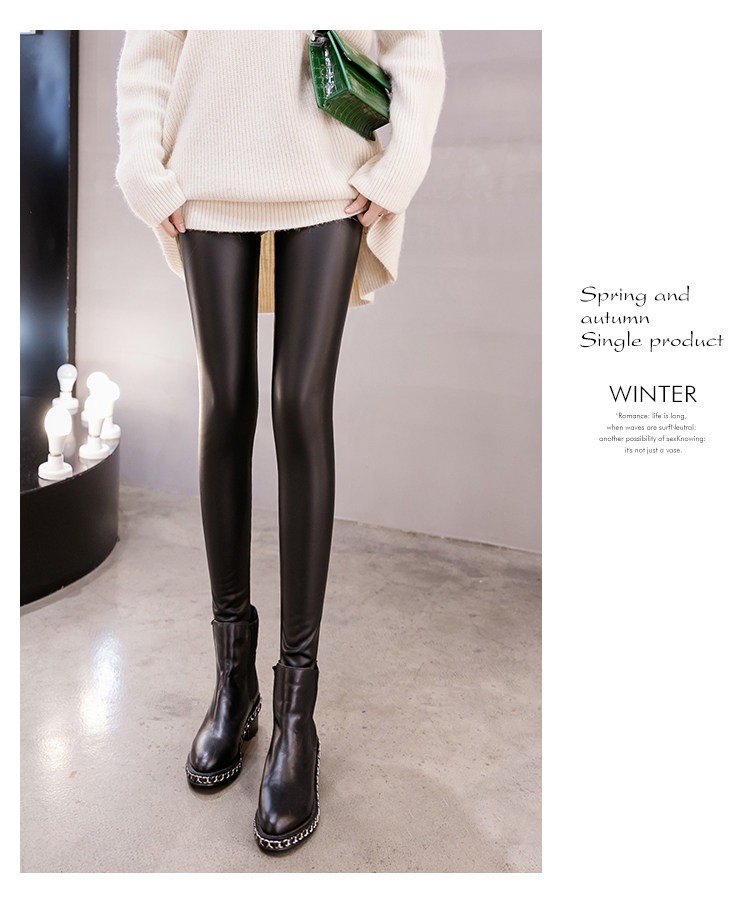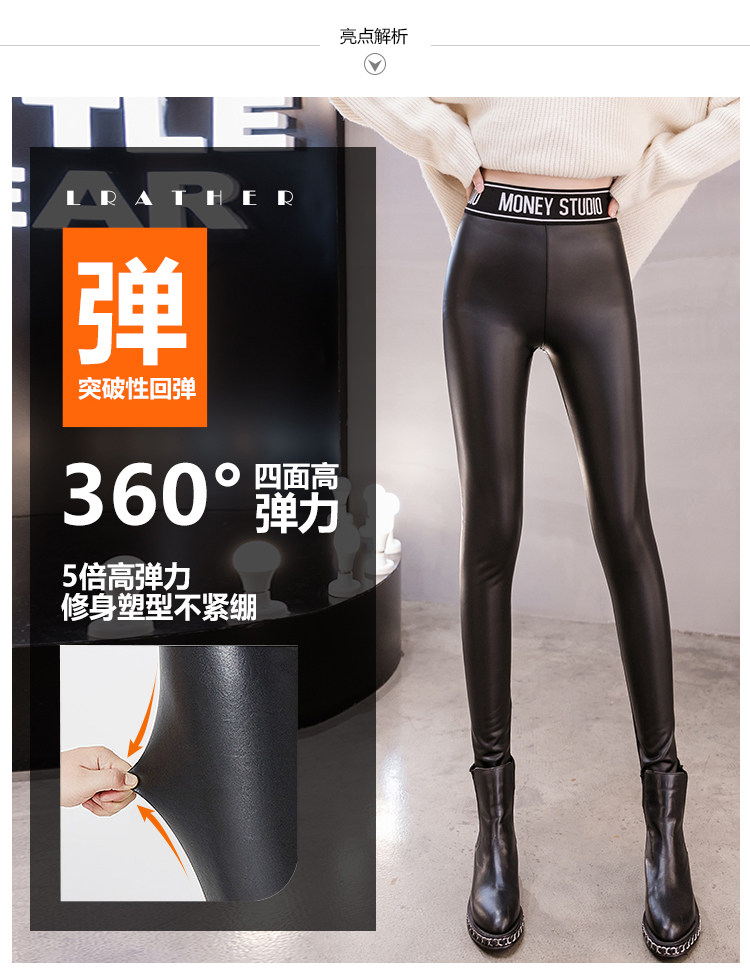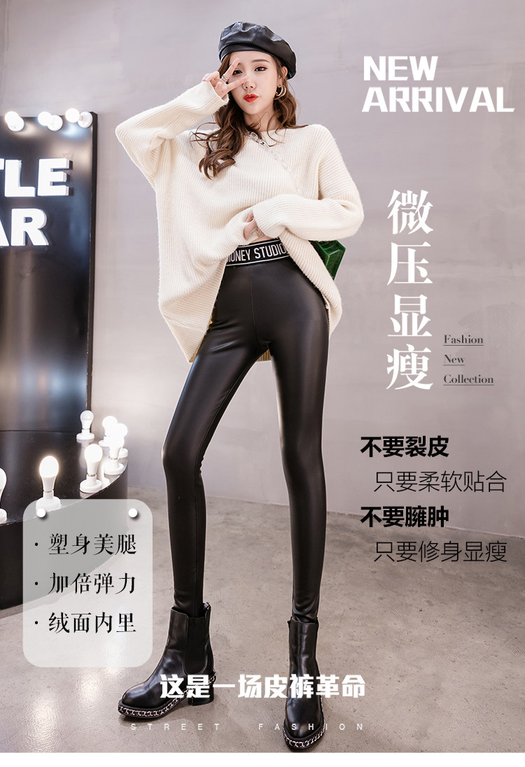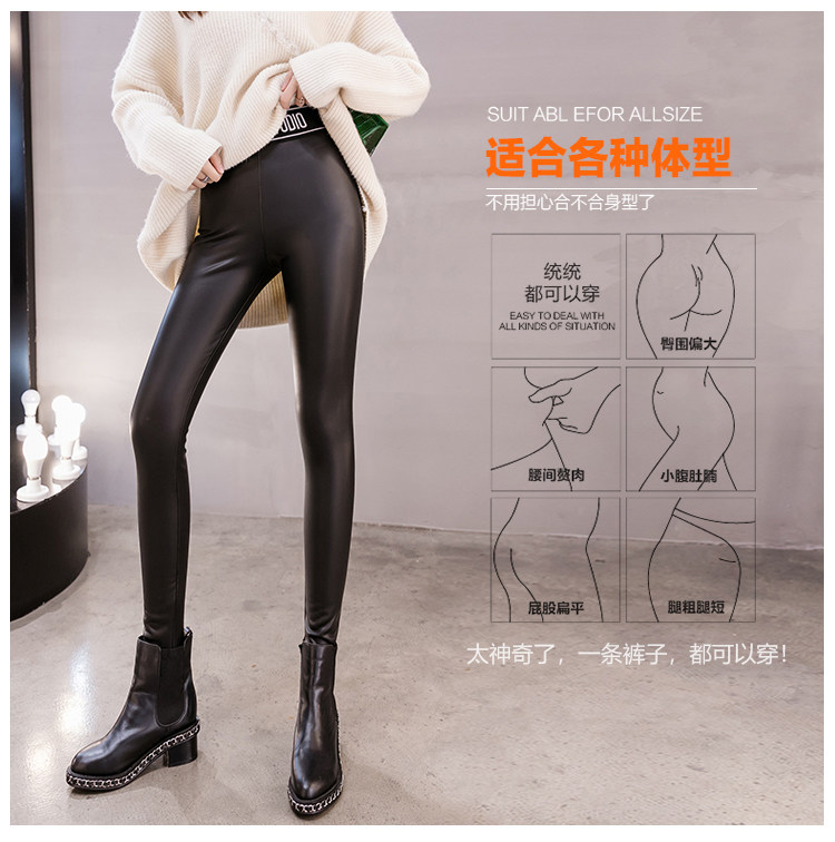 加絨加厚pu皮打底褲女秋冬款外穿高腰彈力皮褲修身顯瘦保暖小腳褲