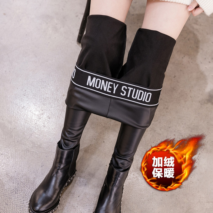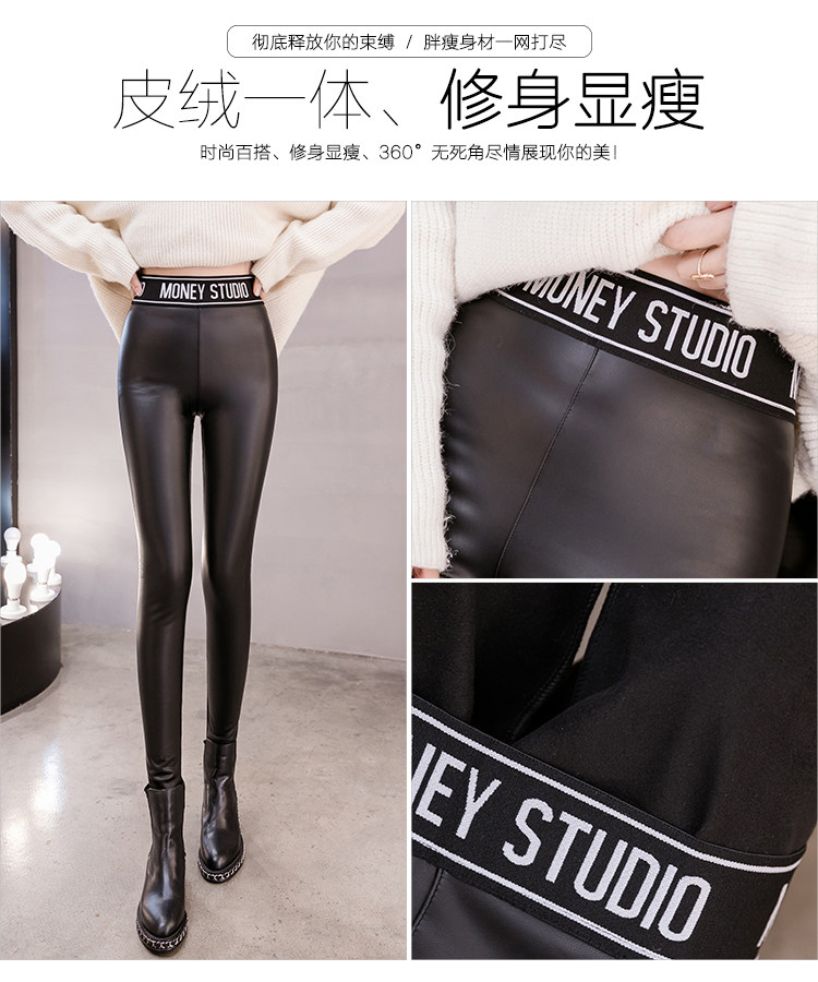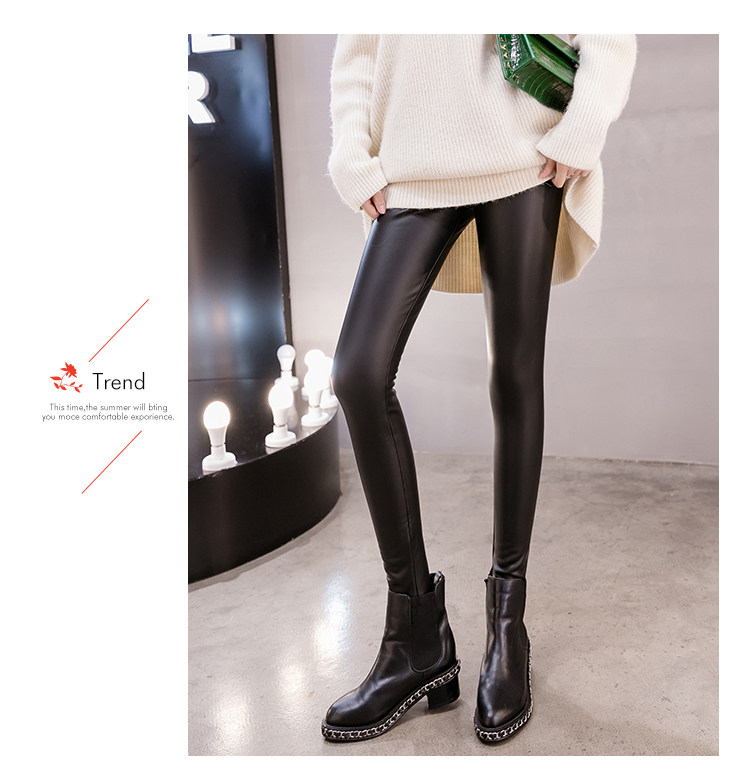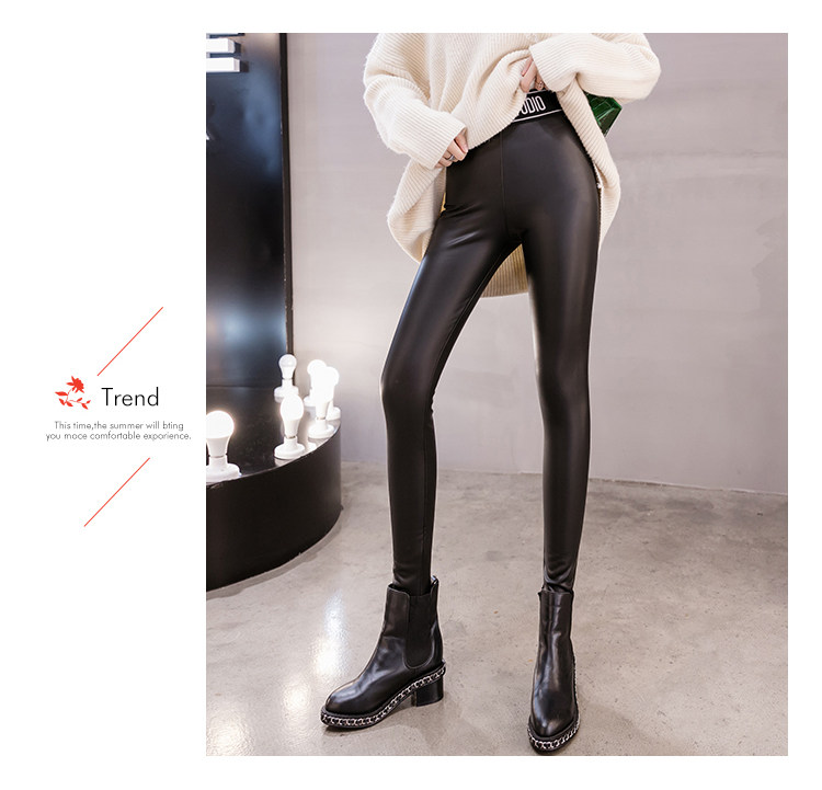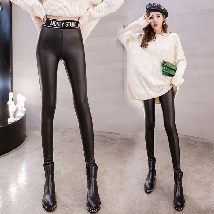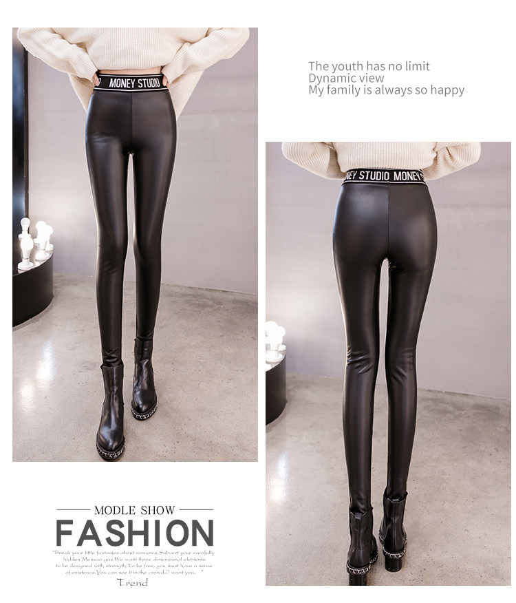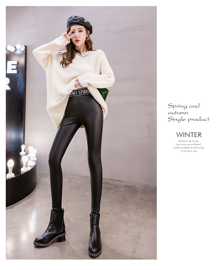 加絨加厚pu皮打底褲女秋冬款外穿高腰彈力皮褲修身顯瘦保暖小腳褲