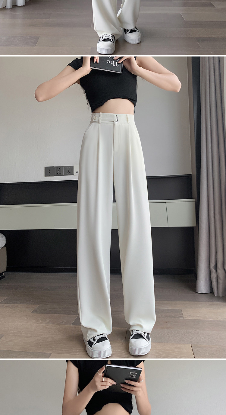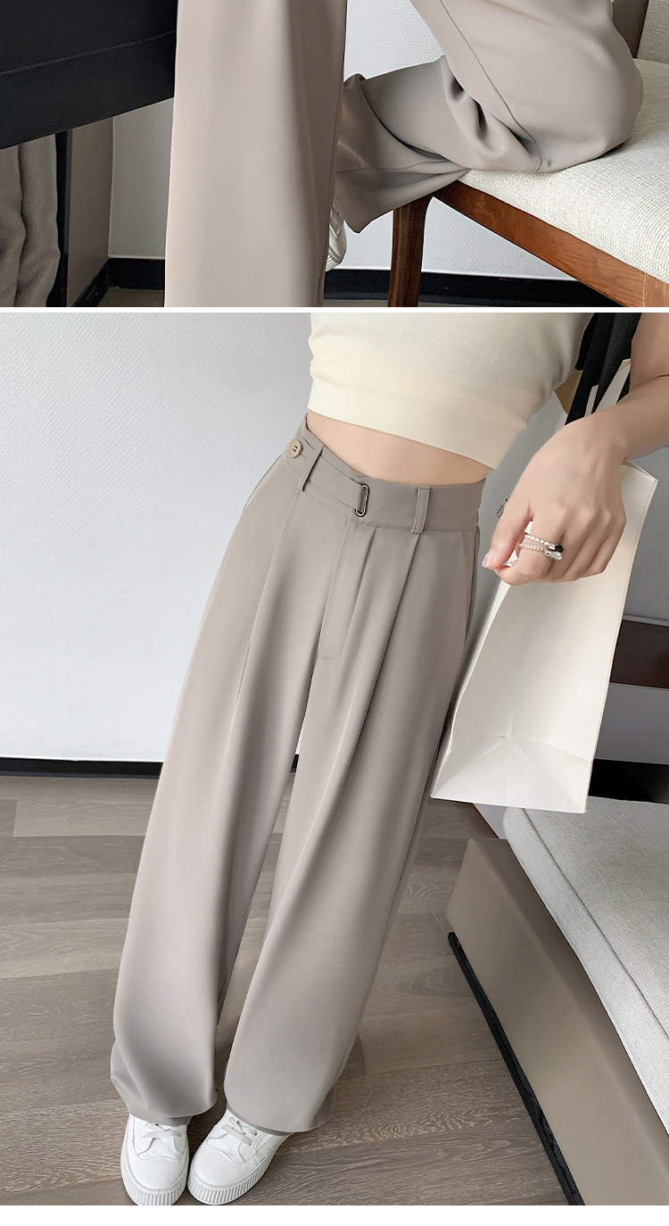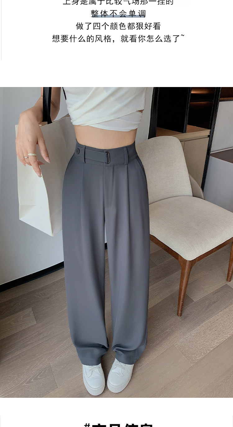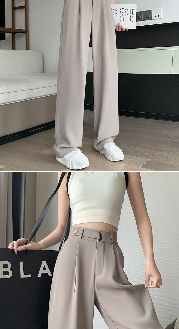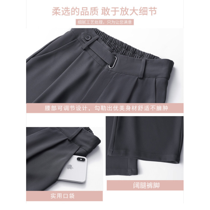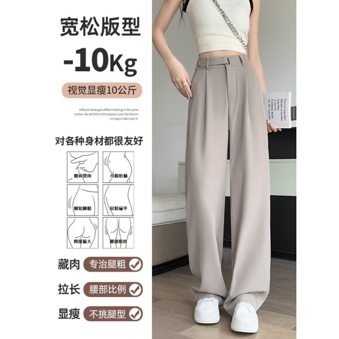高級感窄版西裝褲女春夏秋寬鬆小個子休閒長褲高腰顯瘦拖地濶腿褲