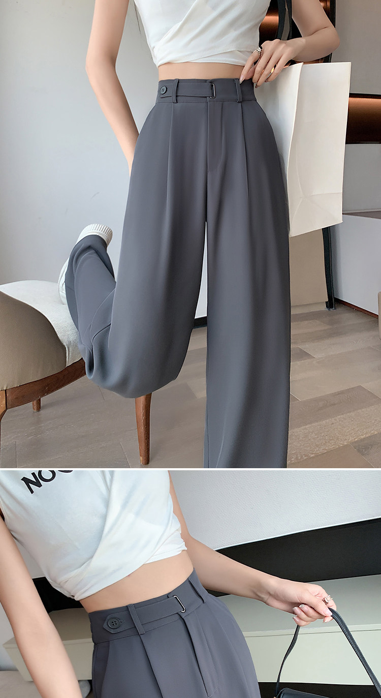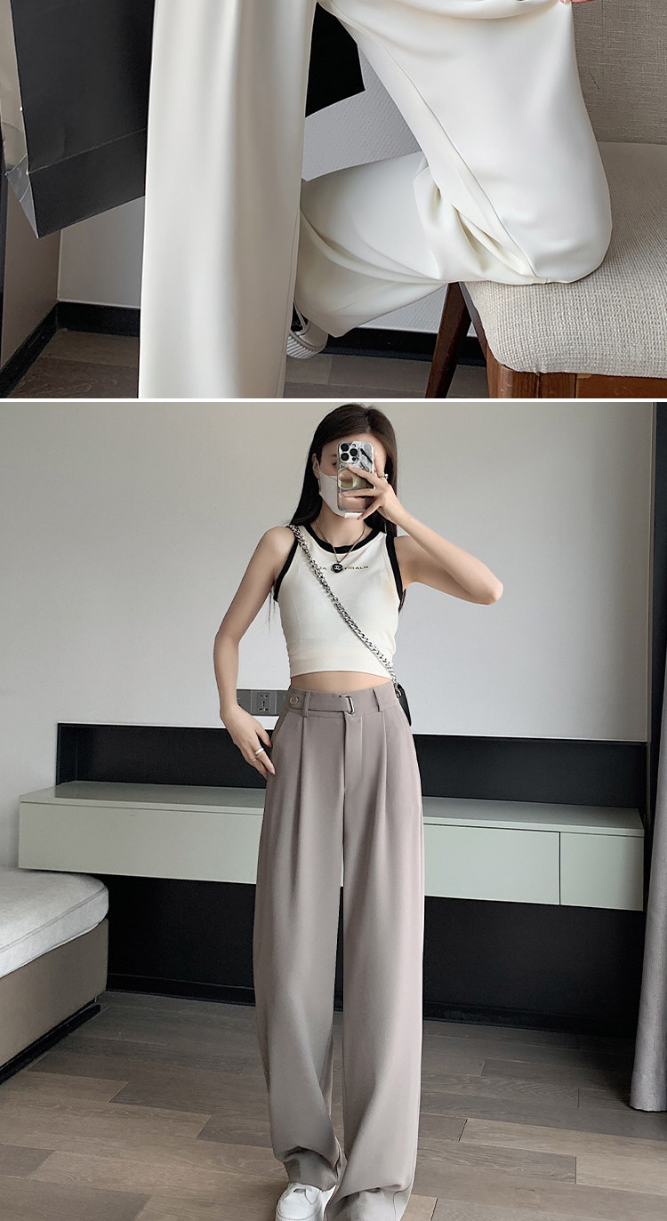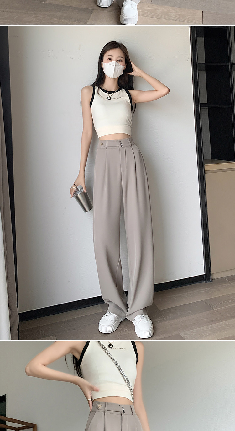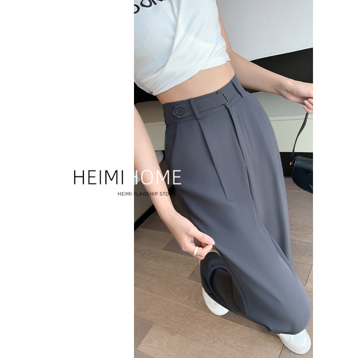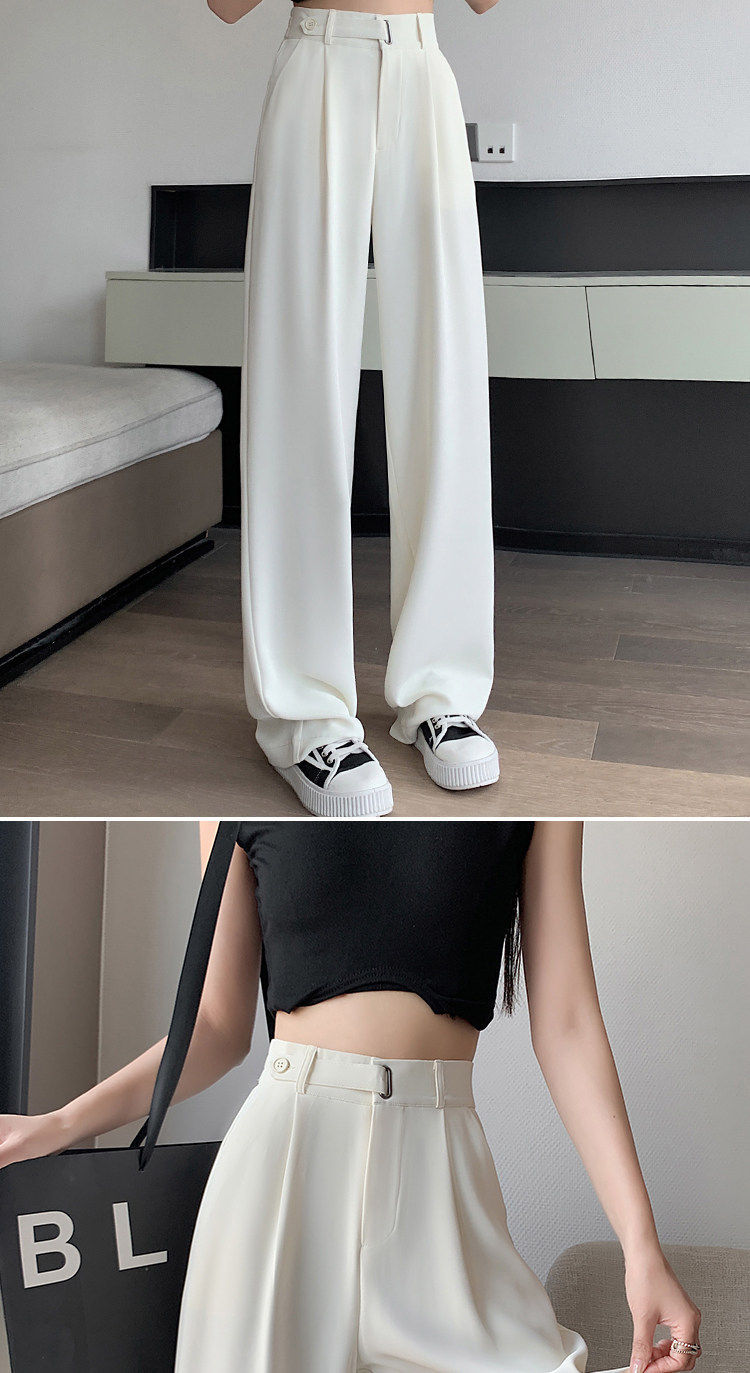 高級感窄版西裝褲女春夏秋寬鬆小個子休閒長褲高腰顯瘦拖地濶腿褲