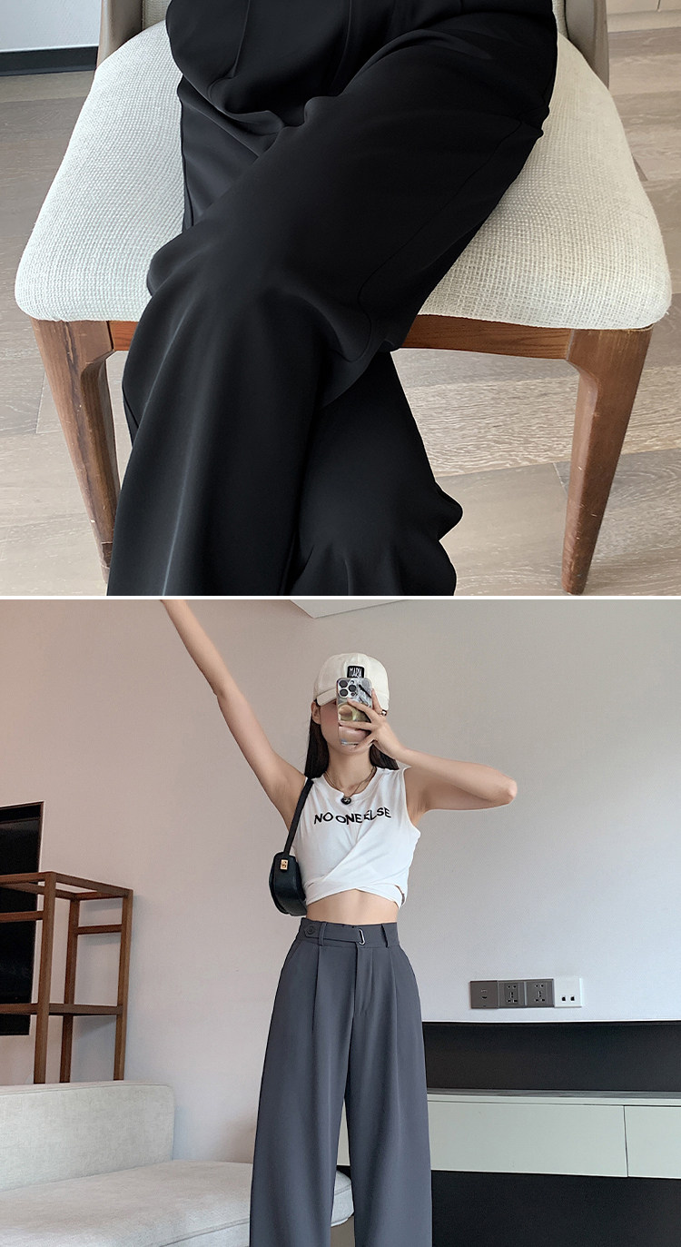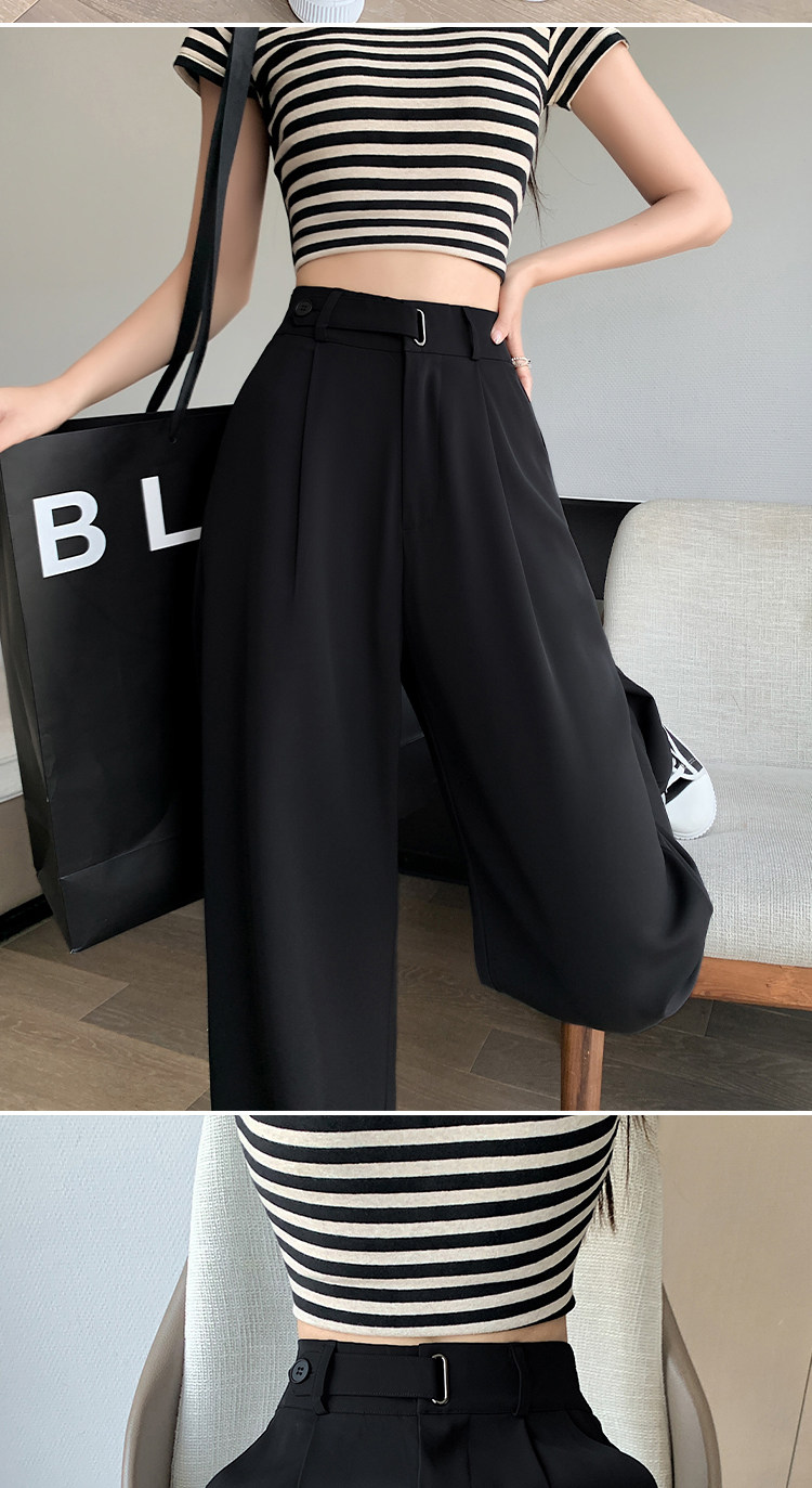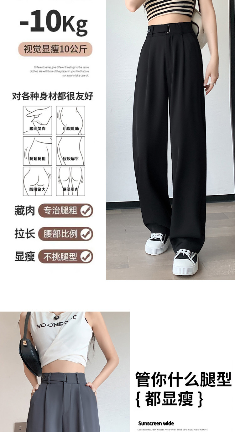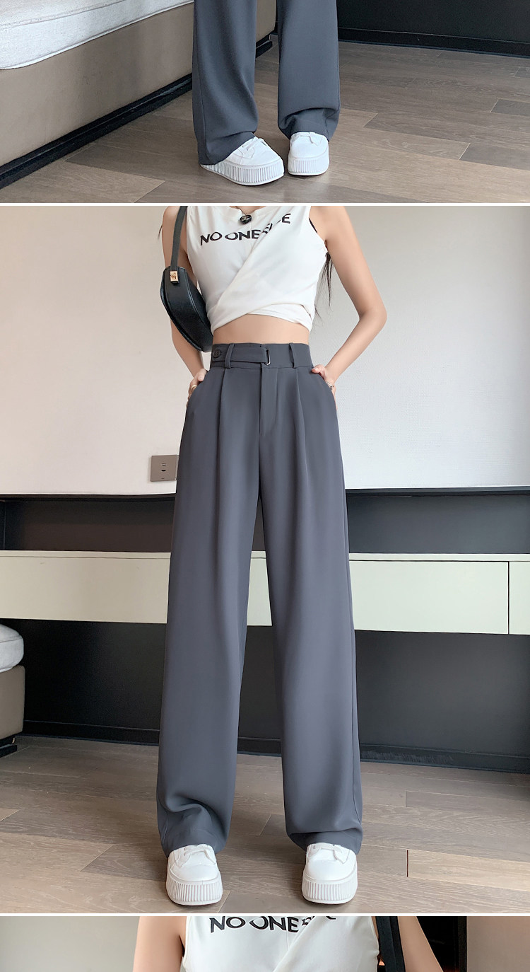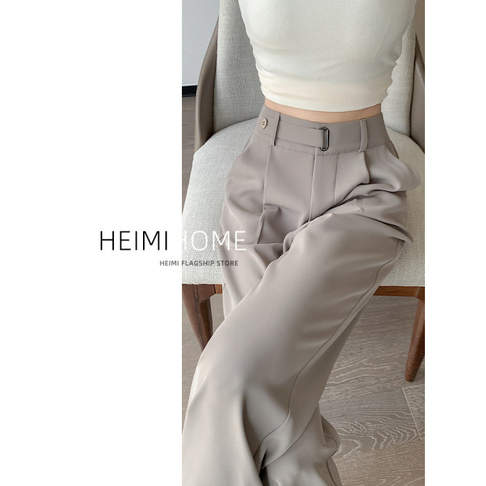 高級感窄版西裝褲女春夏秋寬鬆小個子休閒長褲高腰顯瘦拖地濶腿褲