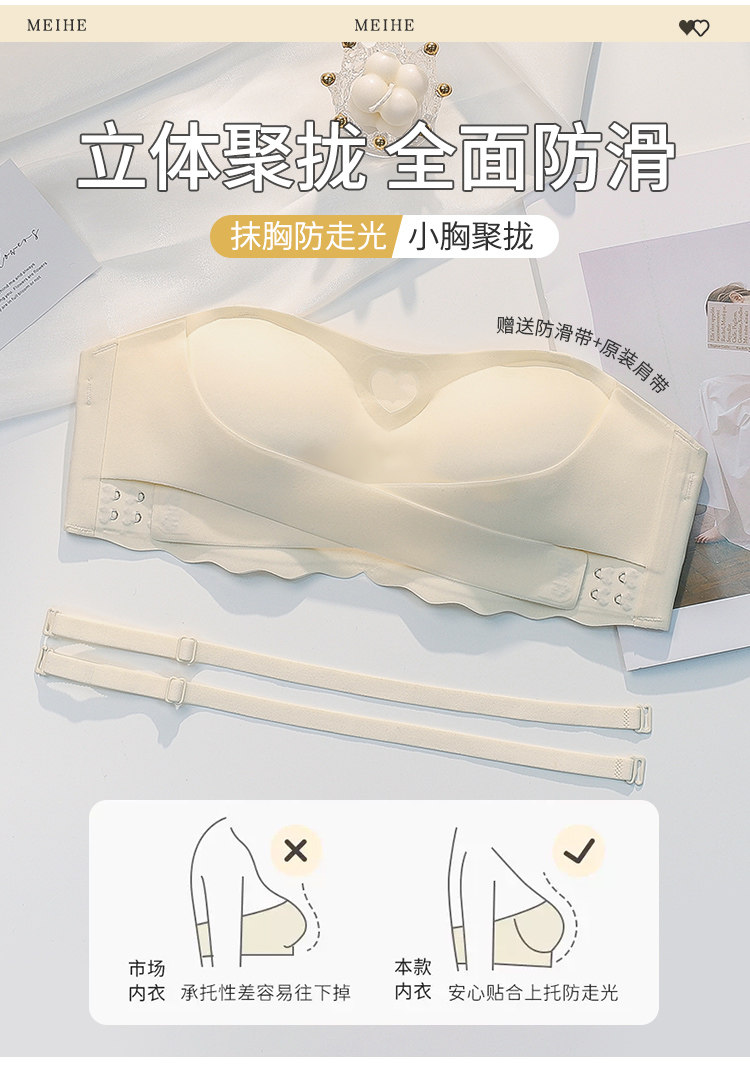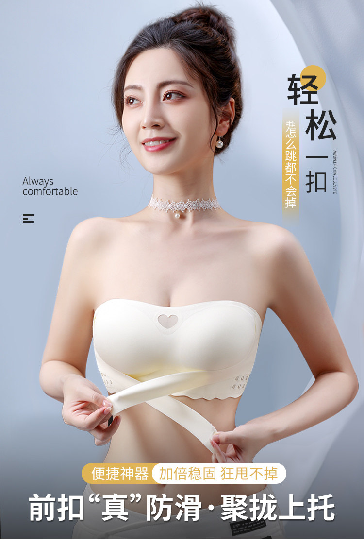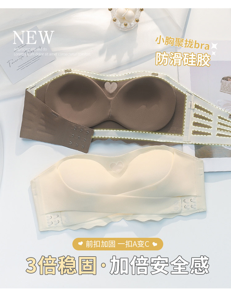 前釦內衣女聚攏小胸無肩帶防滑收副乳防下垂抹胸美背防走光文胸罩
