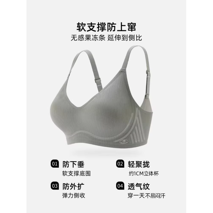 六隻兔子小攏杯無痕內衣女小胸聚攏收副乳果凍條軟支撐無鋼圈文胸