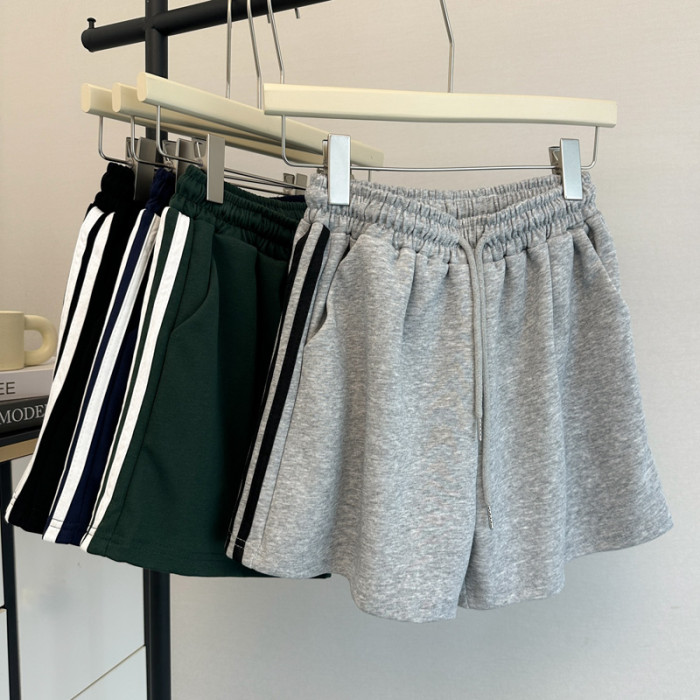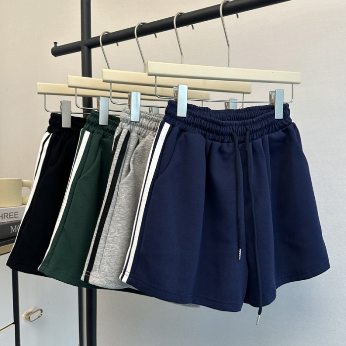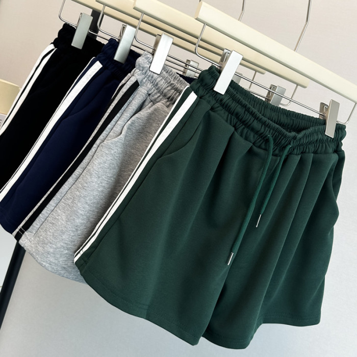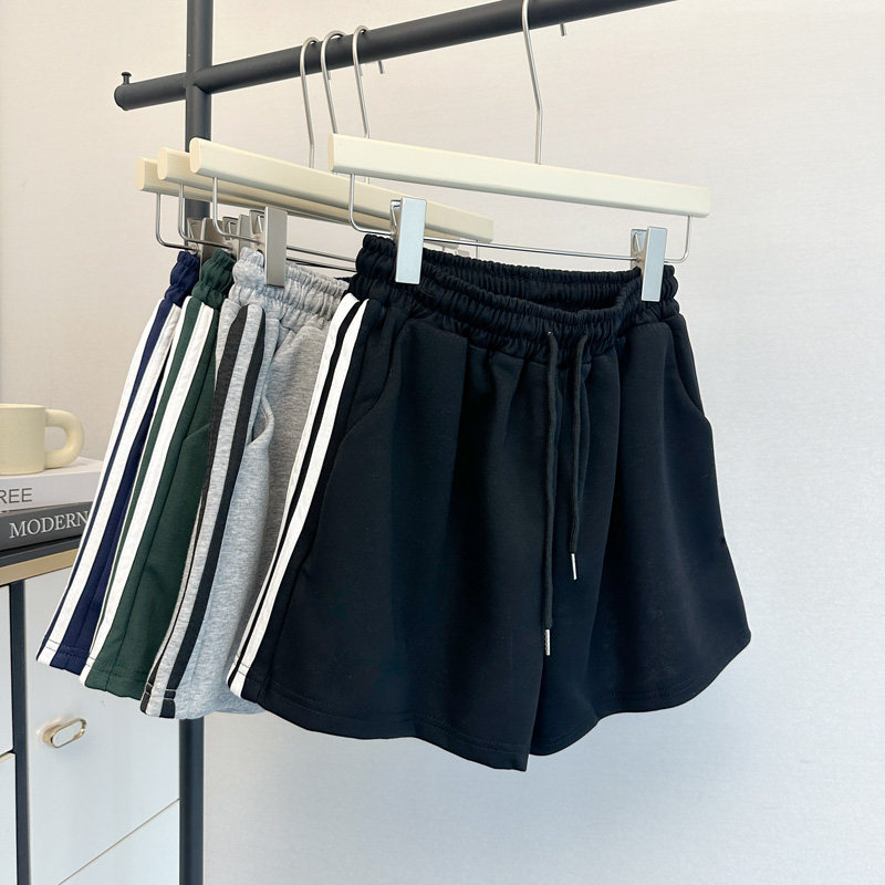 夏季2025新款運動休閒短褲女韓版松緊高腰居家外穿濶腿沙灘熱褲潮